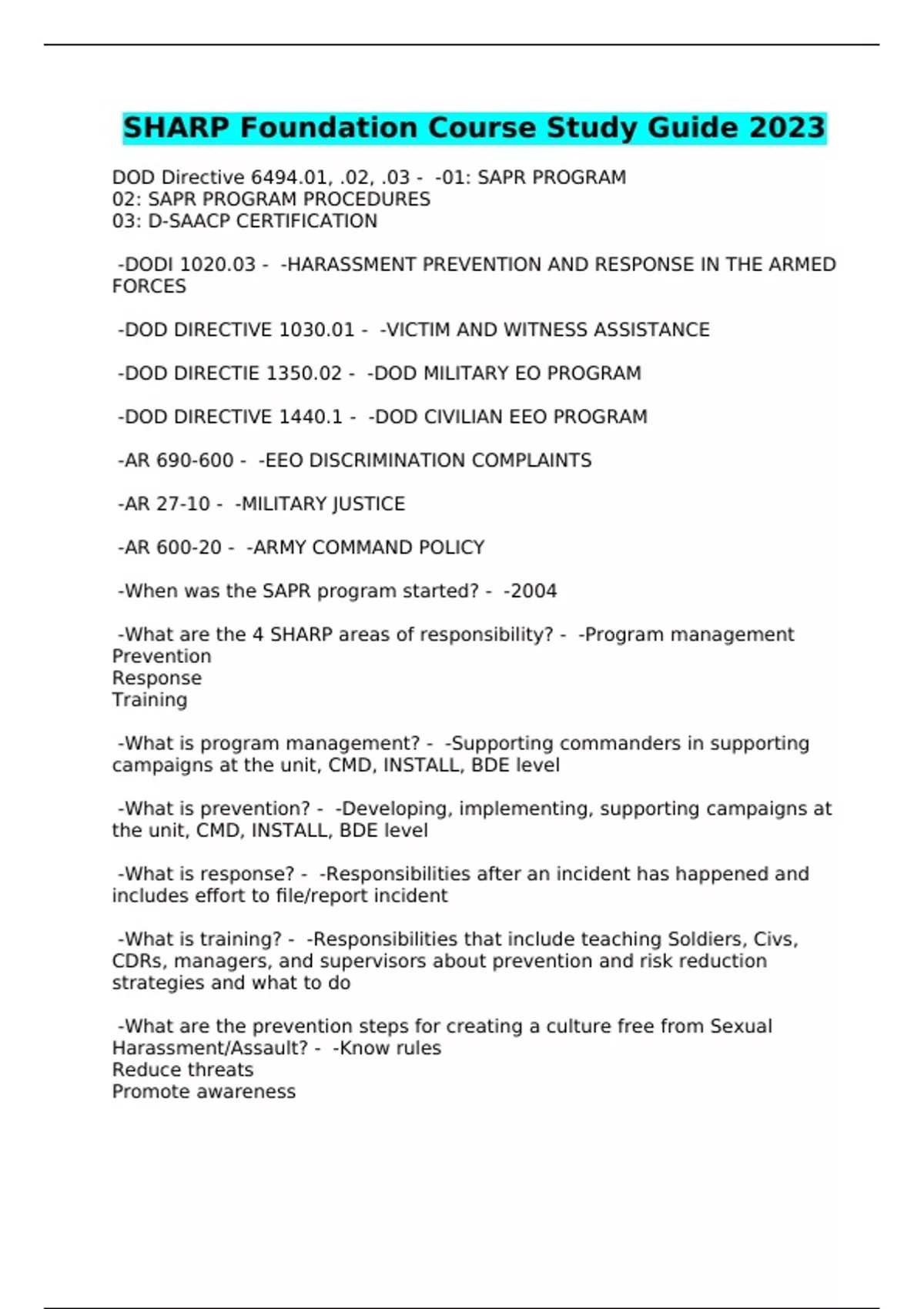 SHARP Foundation Course Study Guide 2023