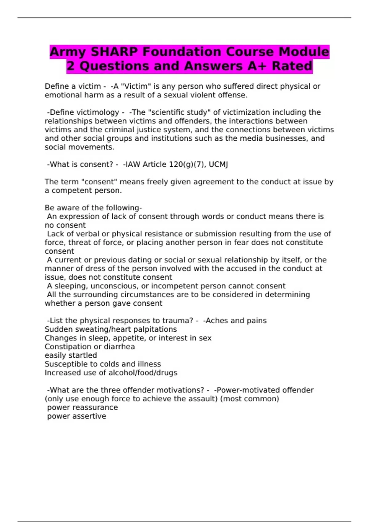 Army SHARP Foundation Course Module 2 Questions and Answers A+ Rated