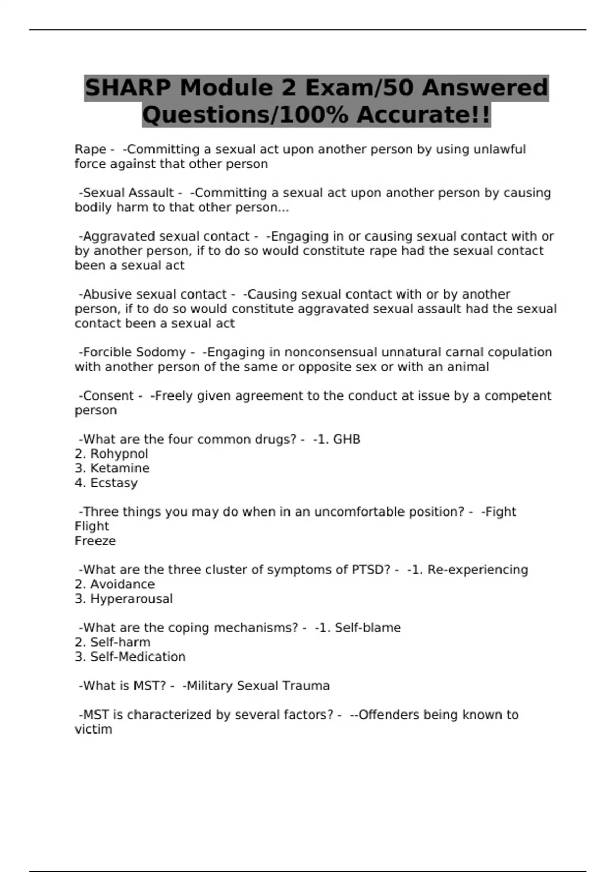 SHARP Module 2 Exam/50 Answered Questions/100% Accurate!!