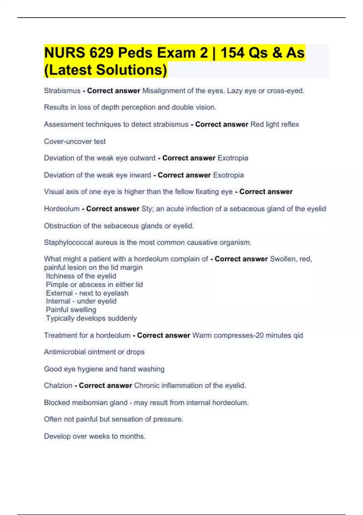 nurs 629 peds exam 2 | 154 qs amp as latest solutio