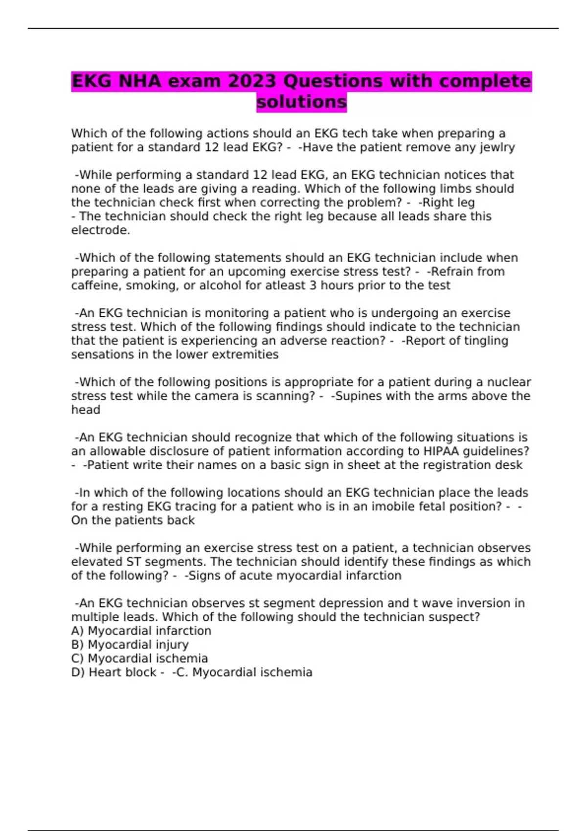 ekg nha exam 2023 questions with complete solution