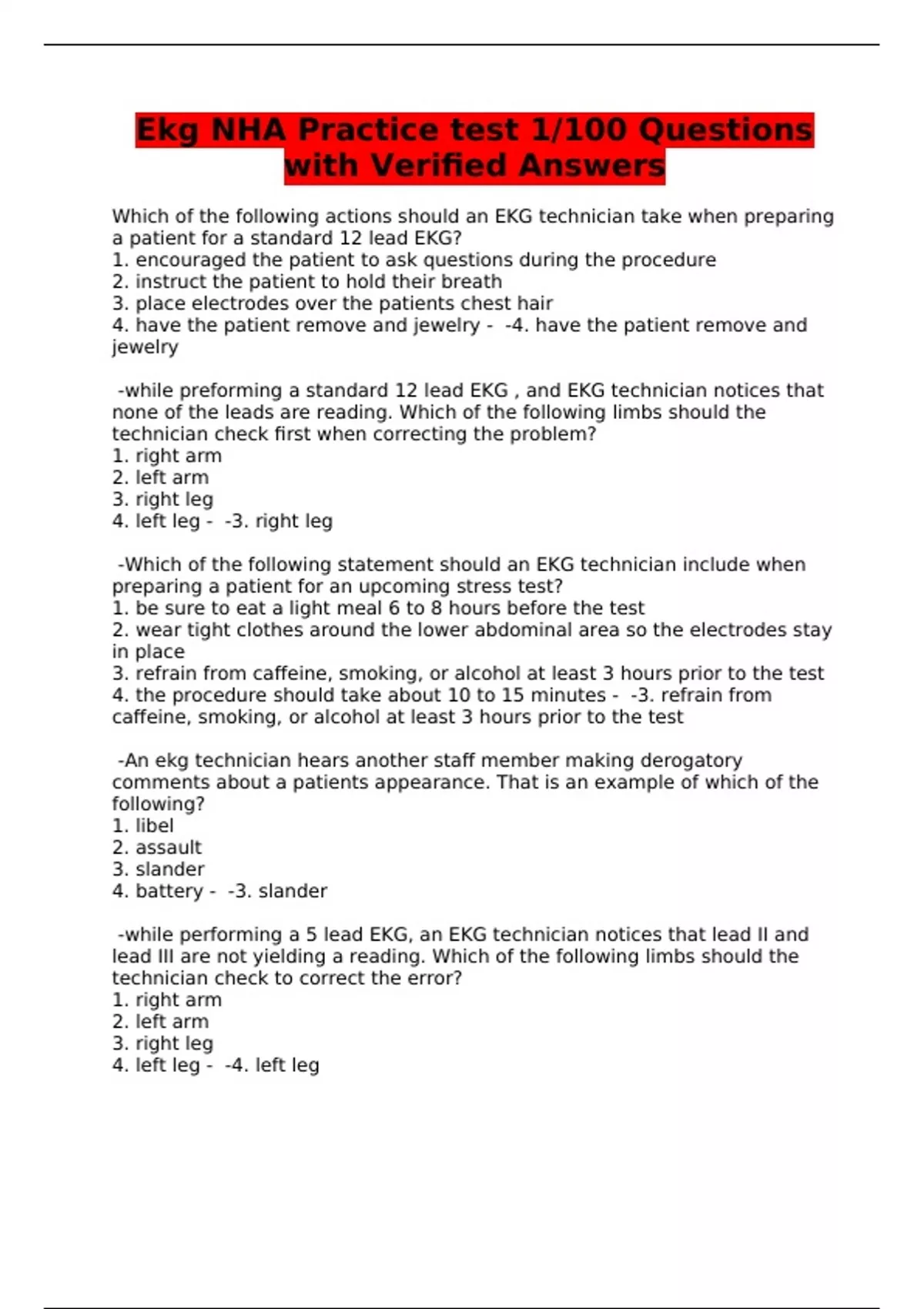 ekg nha practice test 1100 questions with verifie