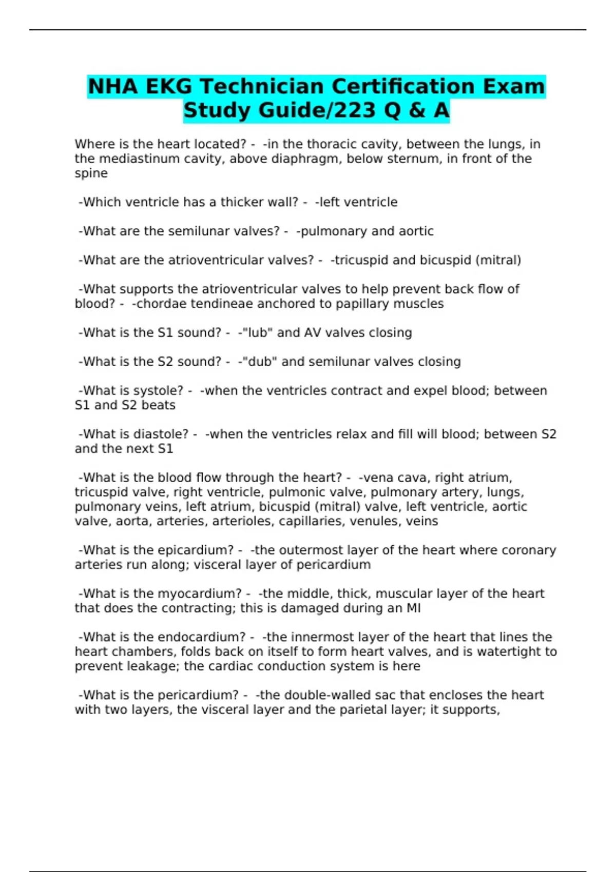 NHA EKG Technician Certification Exam Study Guide/223 Q & A