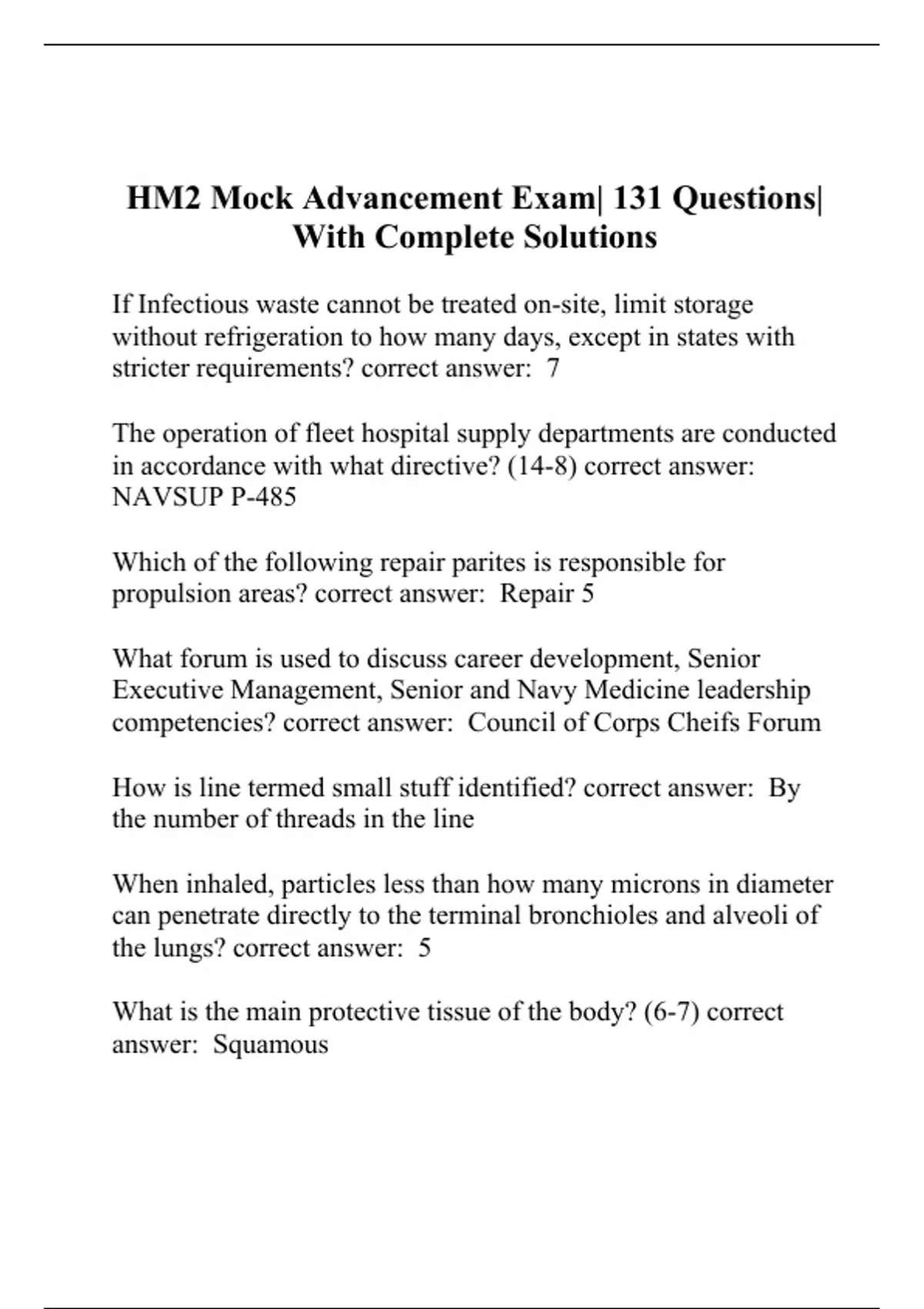 HM2 Mock Advancement Exam| 131 Questions| With Complete Solutions