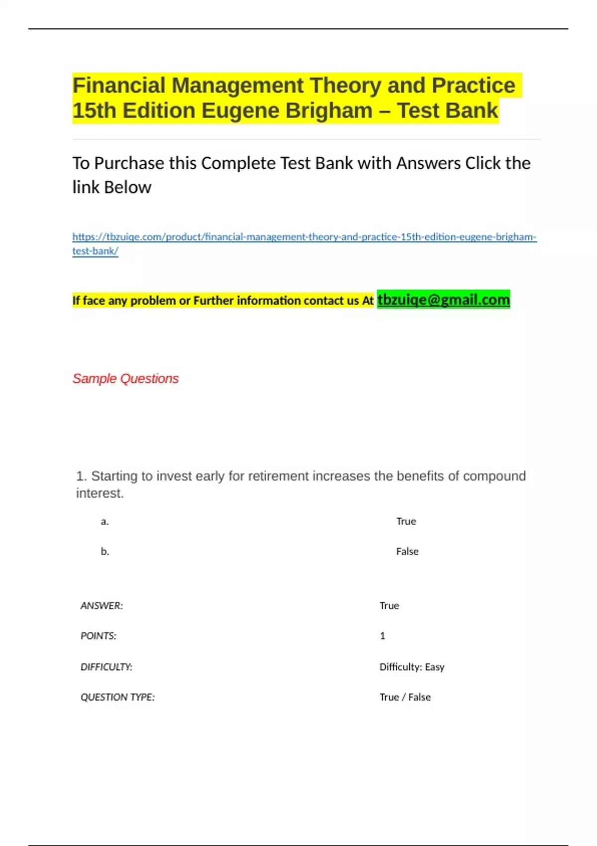 Financial Management Theory and Practice 15th Edition Eugene Brigham – Test Bank
