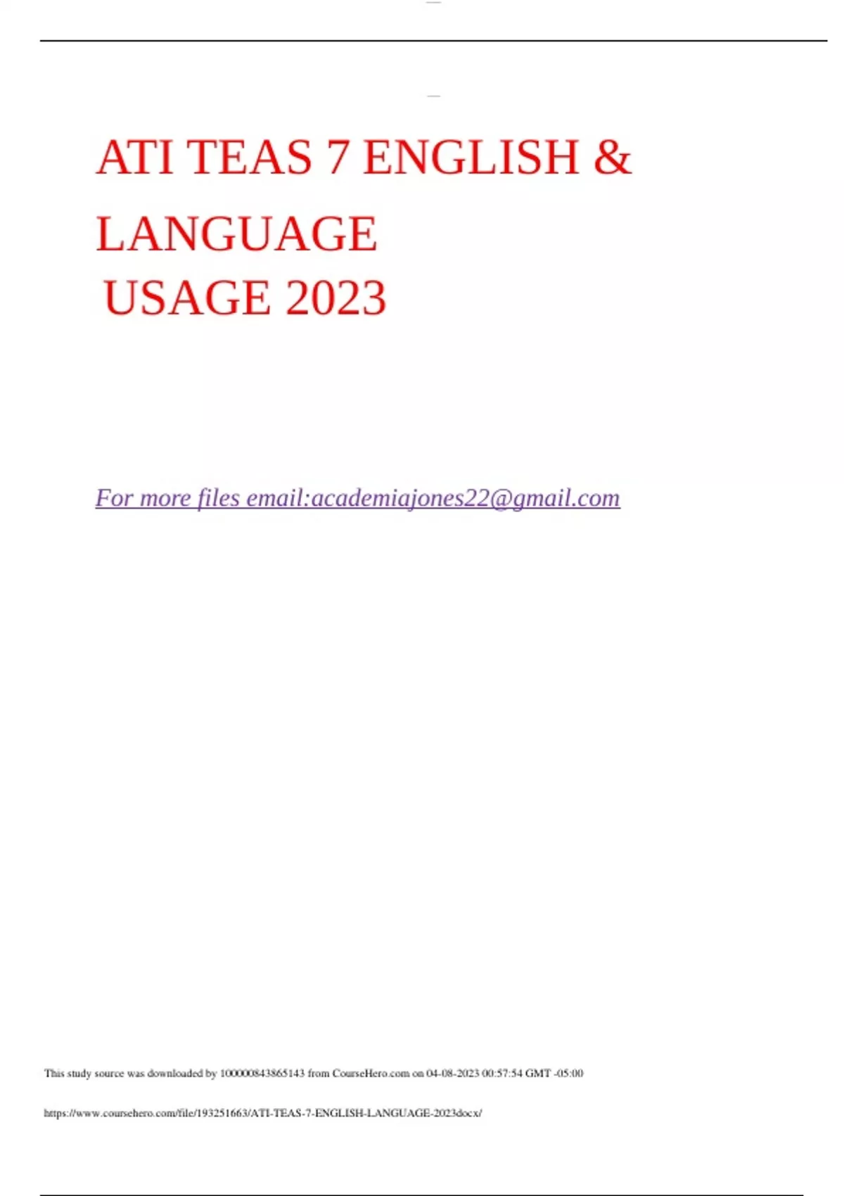 ATI TEAS 7 ENGLISH & LANGUAGE USAGE 2023