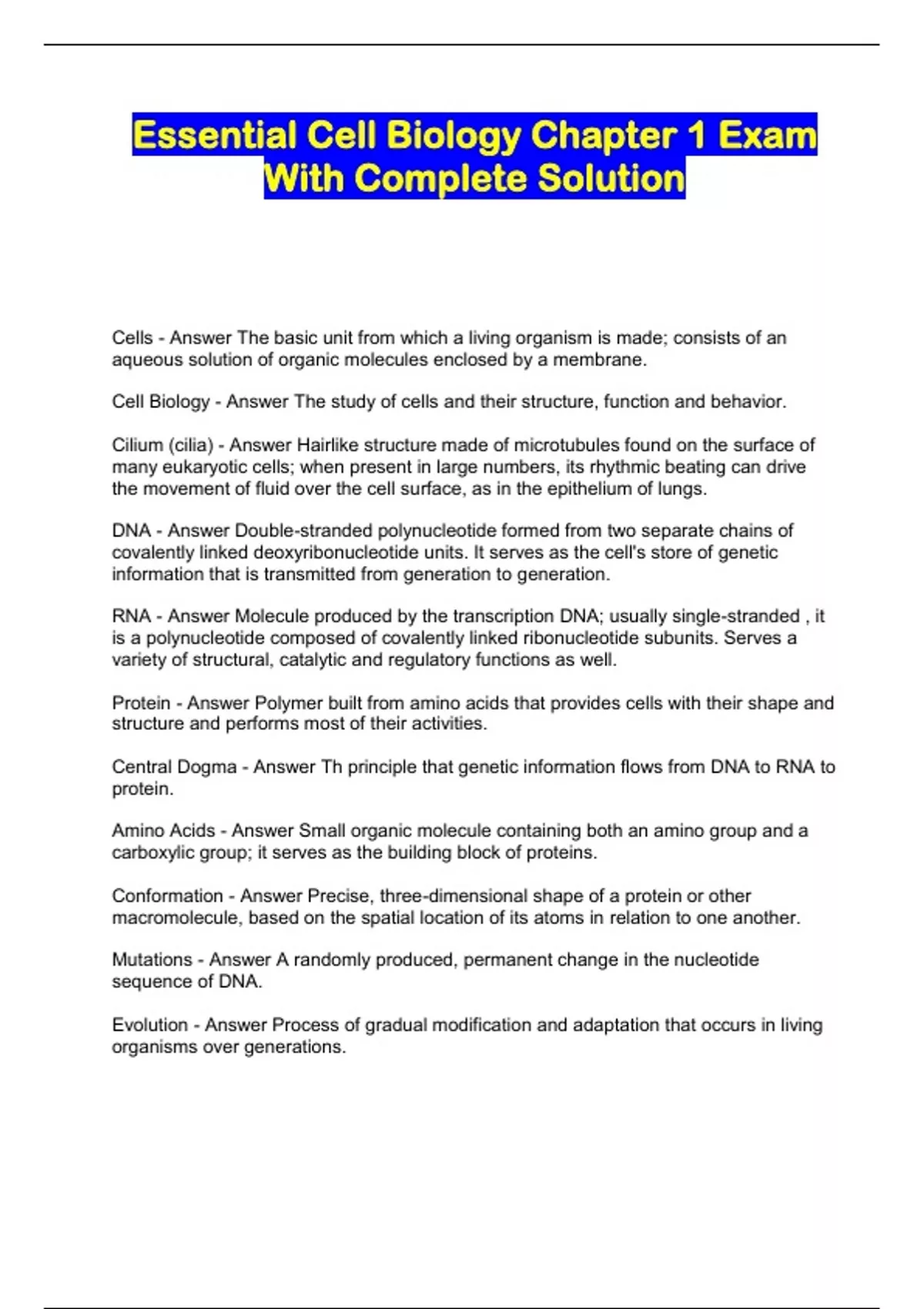 Essential Cell Biology Chapter 1 Exam With Complete Solution...