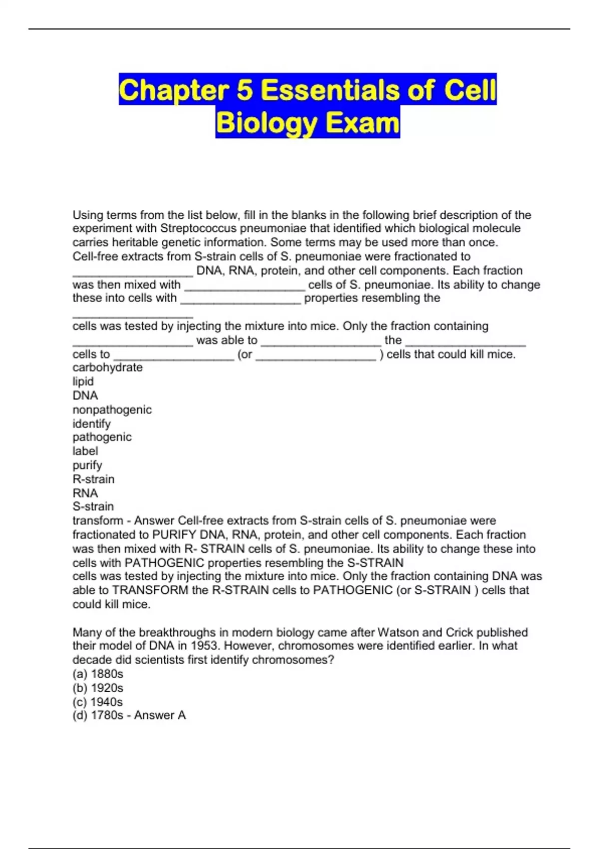 Chapter 5 Essentials of Cell Biology Exam