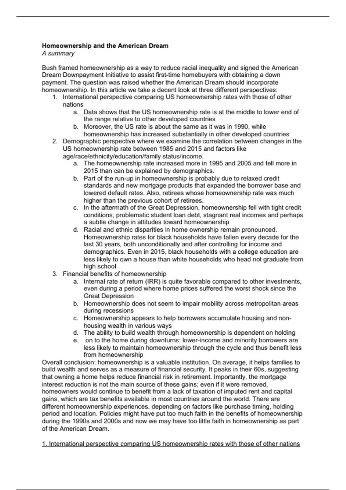 1. International perspective comparing US homeownership rates with those of other