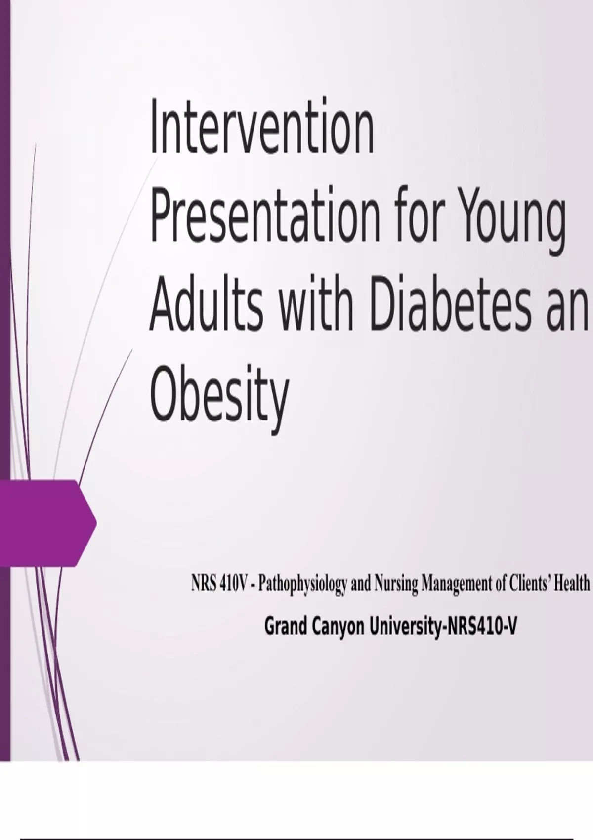 NRS 410V Topic 5 Assignment; Intervention Presentation on Diabetes