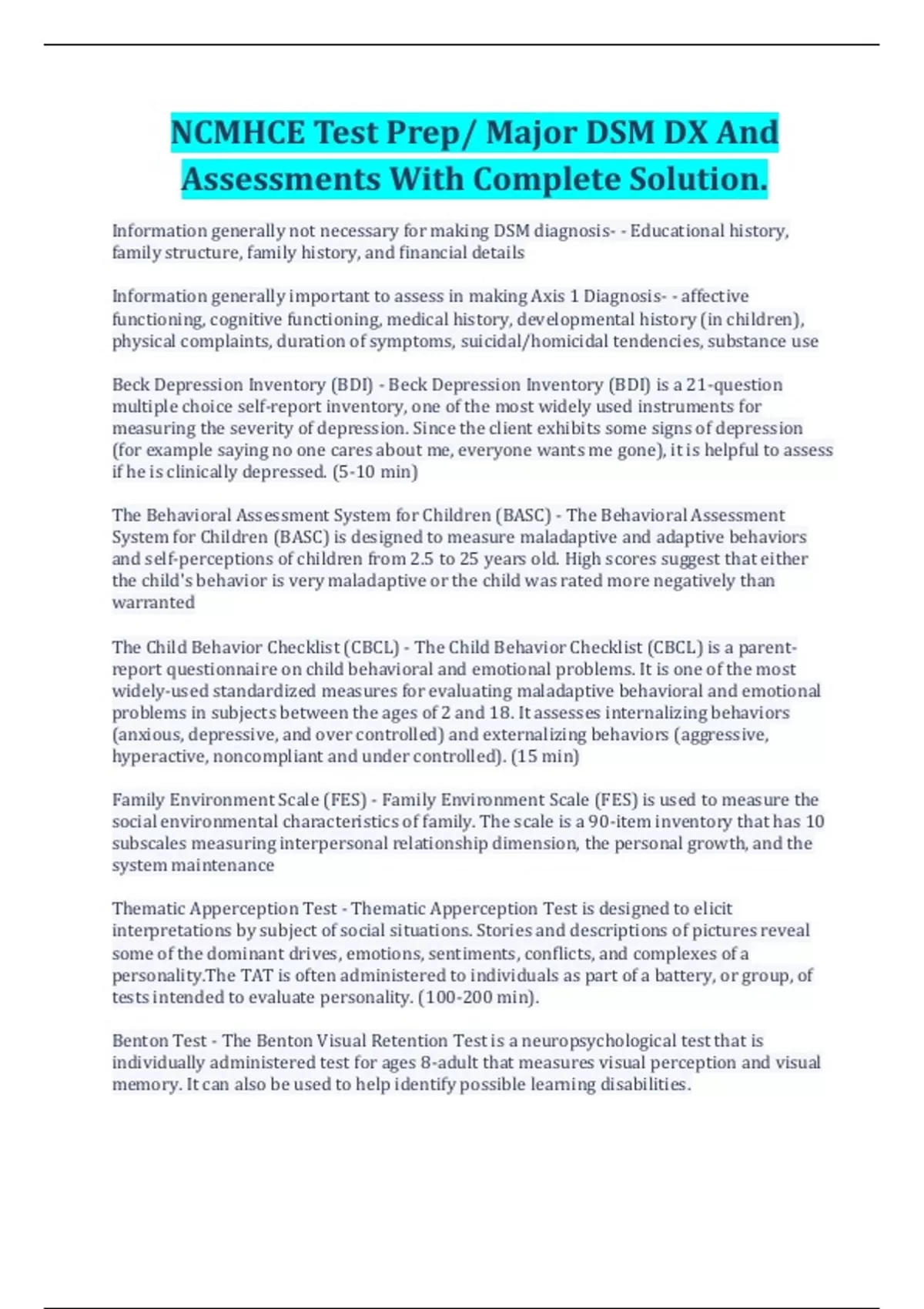 NCMHCE Test Prep/ Major DSM DX And Assessments With Complete Solution.