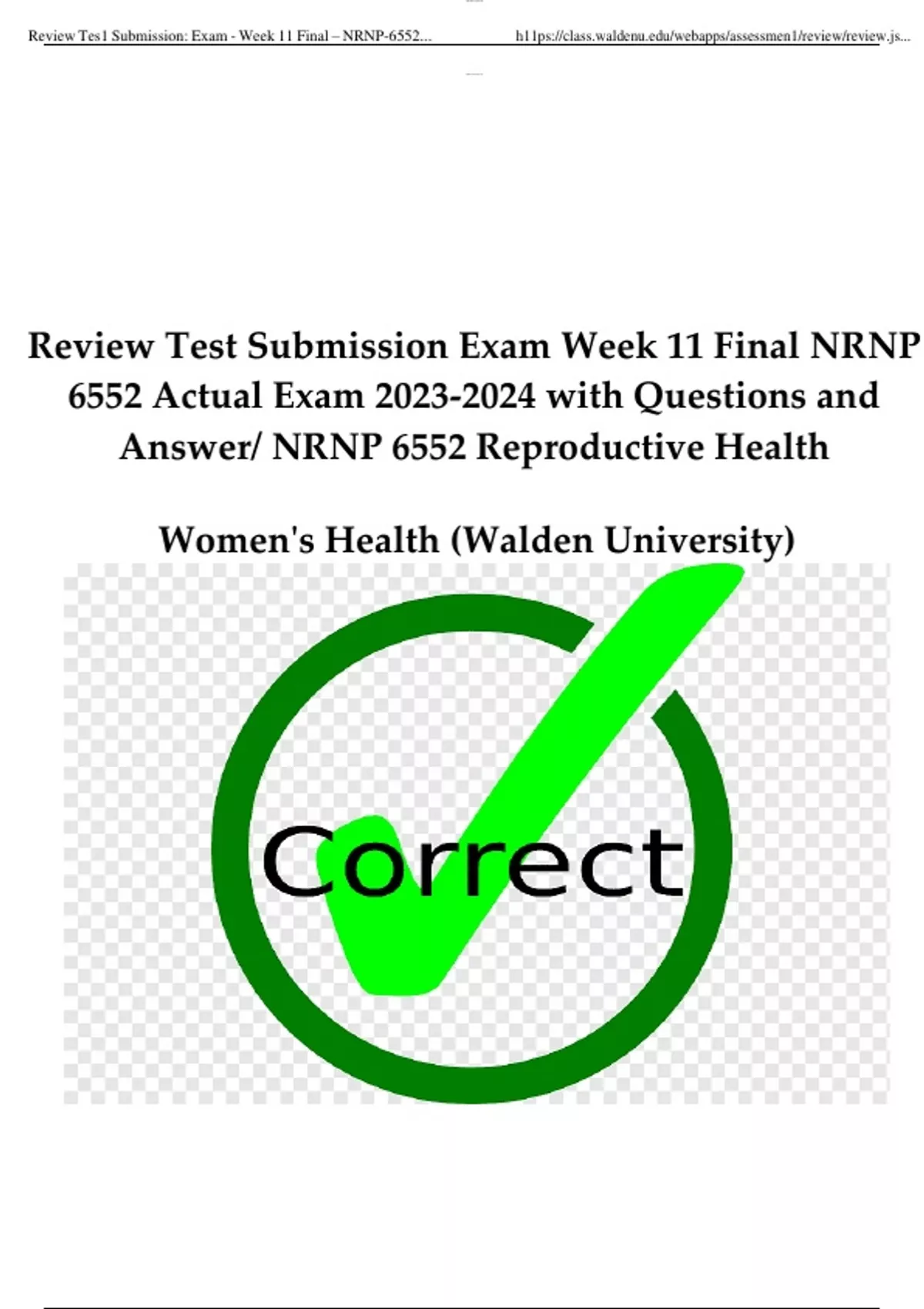 Week 11 Final NRNP 6552 Actual Exam with Questions and Answer/ NRNP 6552 Reproductive Healt