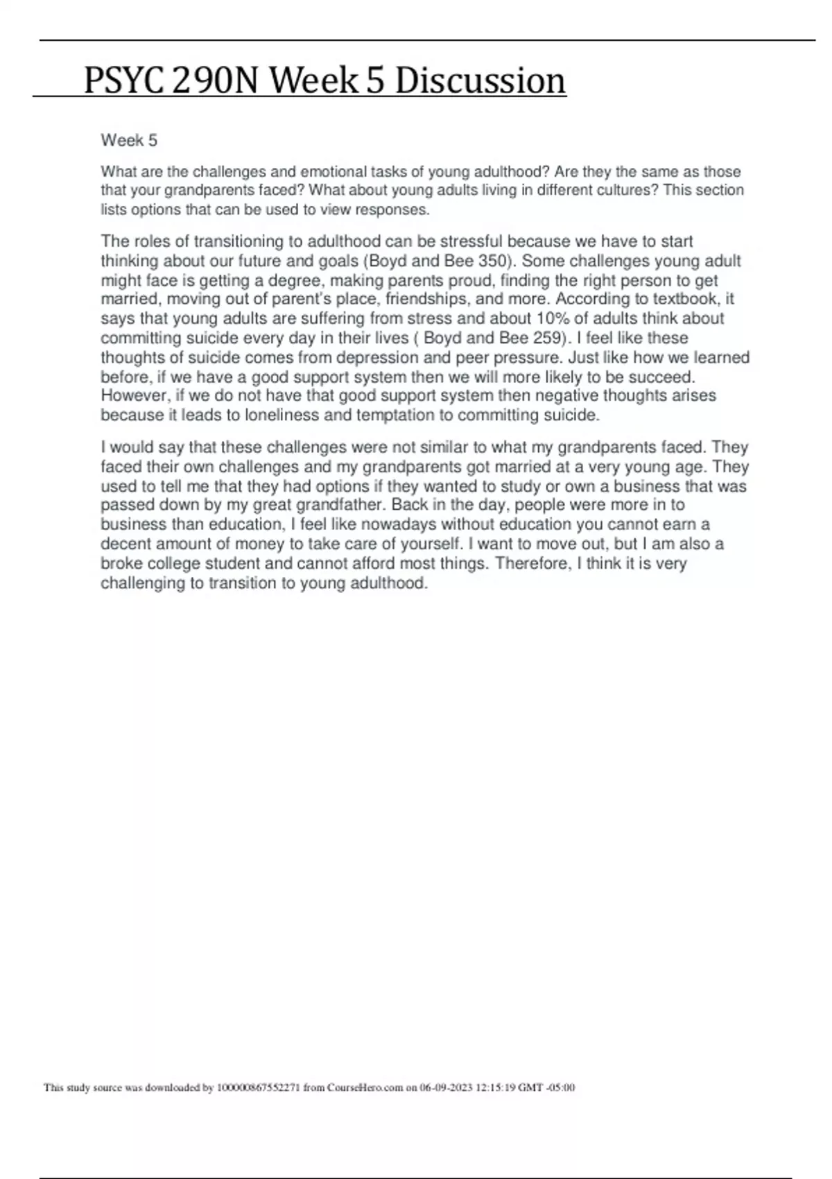 PSYC 290N Week 5 Graded Discussion - Graded A Pass