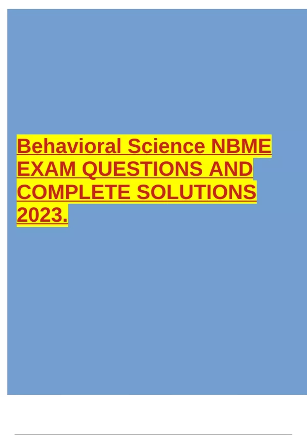 Behavioral Science NBME EXAM QUESTIONS AND COMPLETE SOLUTIONS 2023.