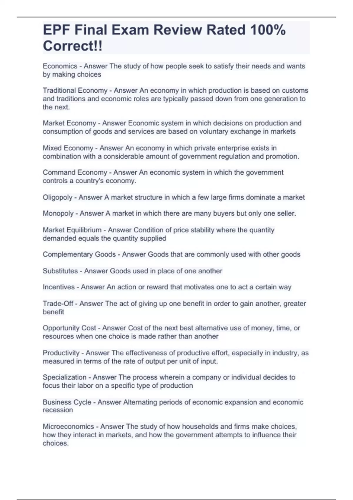 EPF Final Exam Review Rated 100% Correct!!