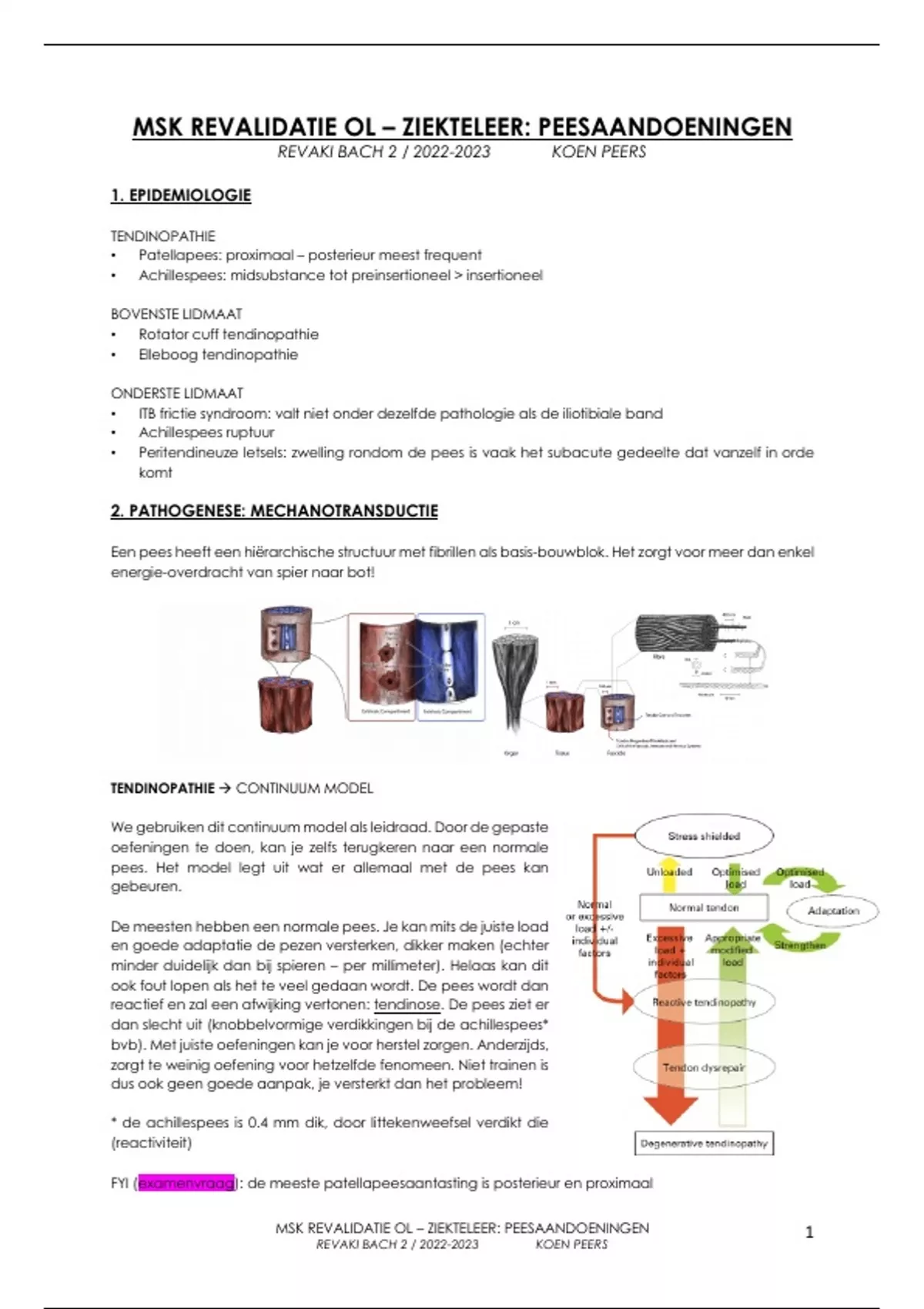 MSK REVALIDATIE OL – ZIEKTELEER: PEESAANDOENINGEN 1