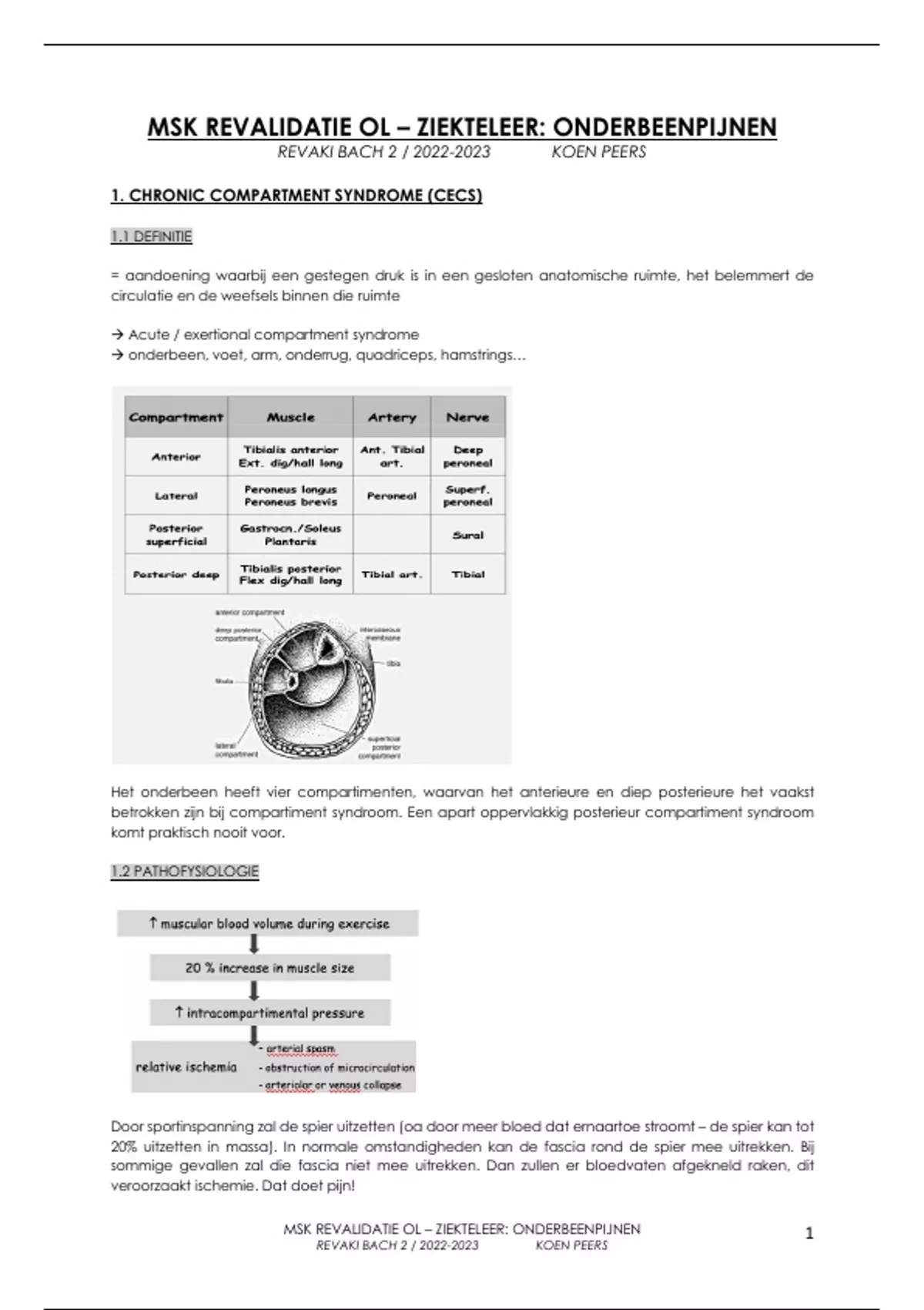 SAMENVATTING MSK OL ziekteleer - onderbeenpijnen
