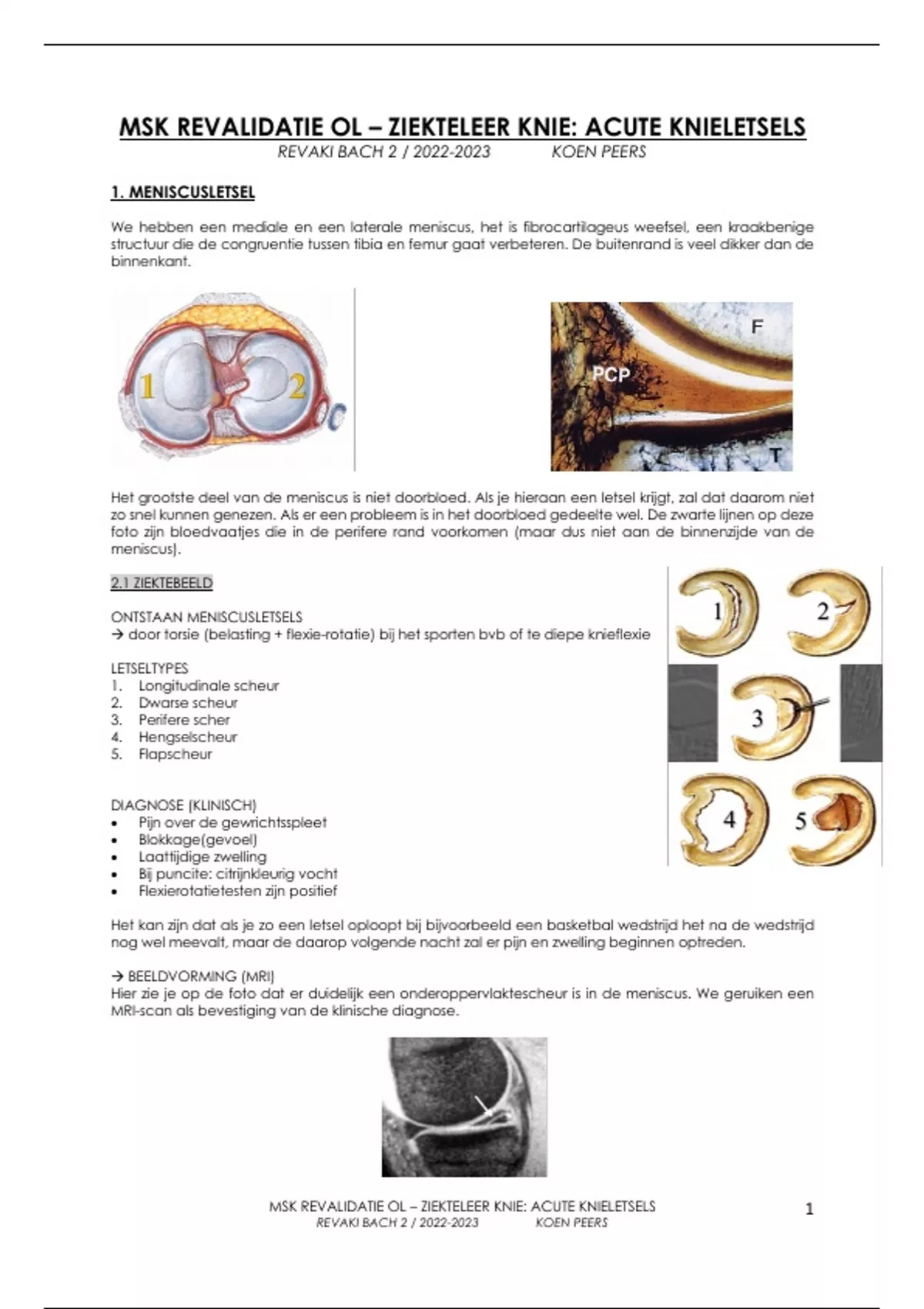 SAMENVATTING MSK OL ziekteleer - acute knieletsels