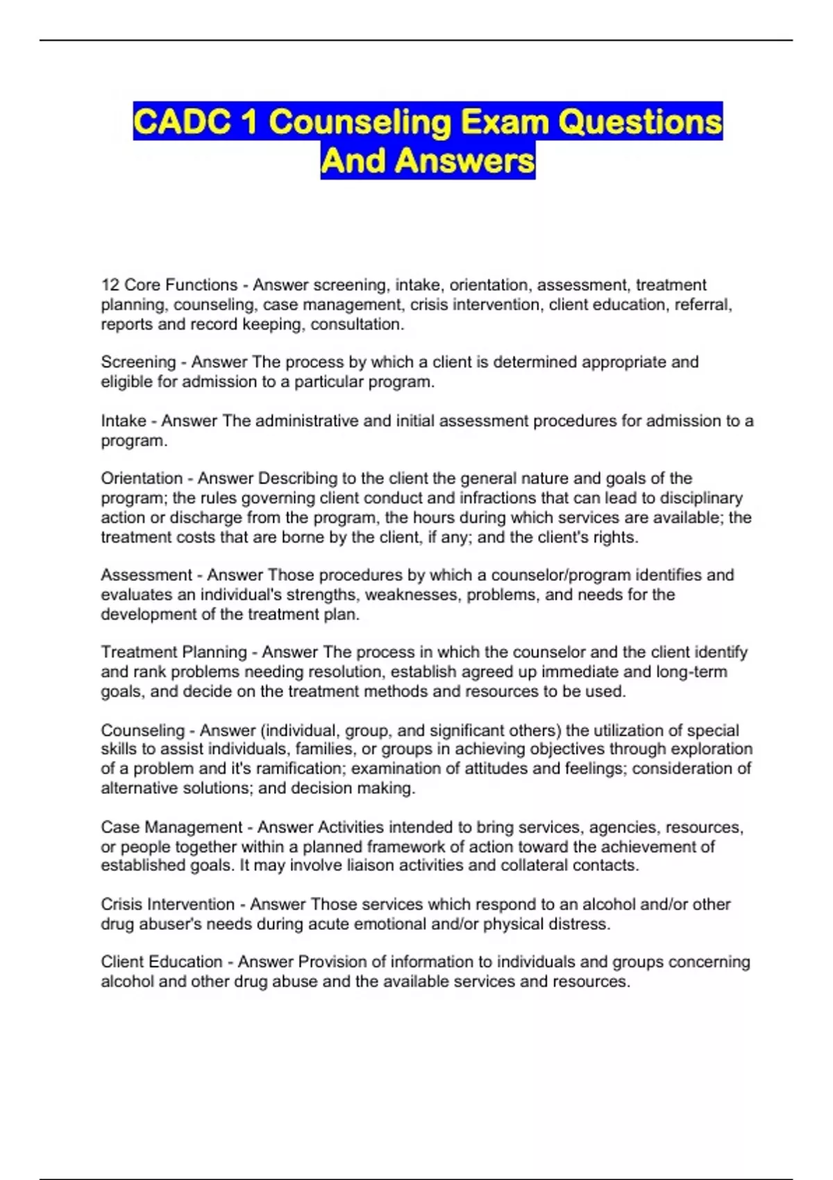 CADC 1 Counseling Exam Questions And Answers....