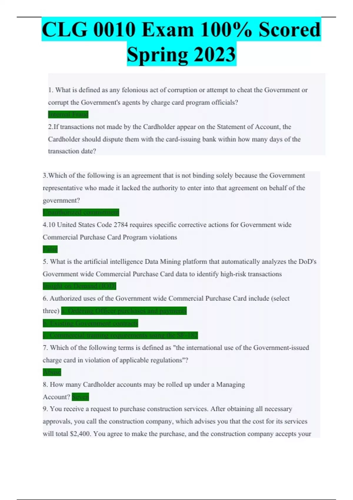 1. What is defined as any felonious act of corruption or attempt to cheat the Government or corrupt the Government's agents by charge card program officials? Internal Fraud 2. If transactions not made by the Cardholder appear on the Statement of Account, the Cardholder should dispute them with the card-issuing bank within how many days of the transaction date? 90