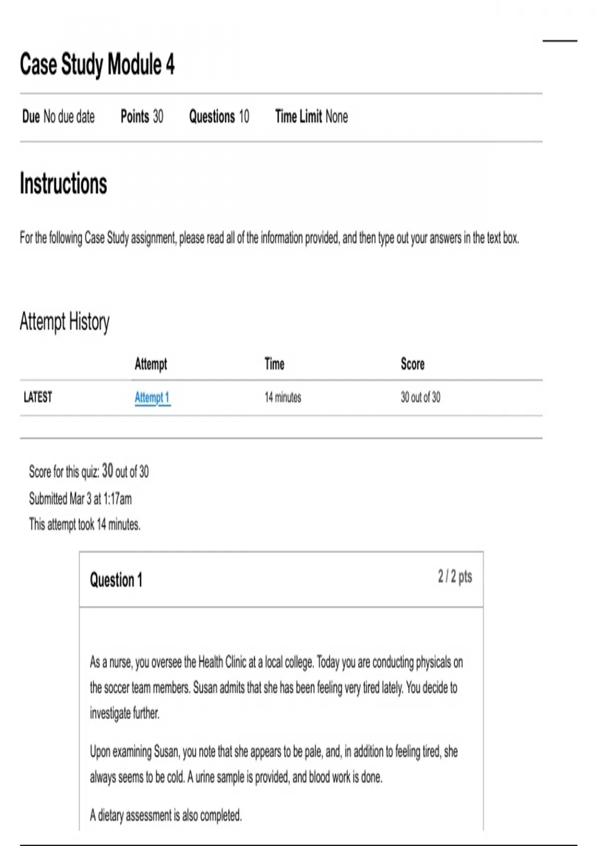 BIOD 121 Essentials in Nutrition Module 4 Case Study (GRADED A)
