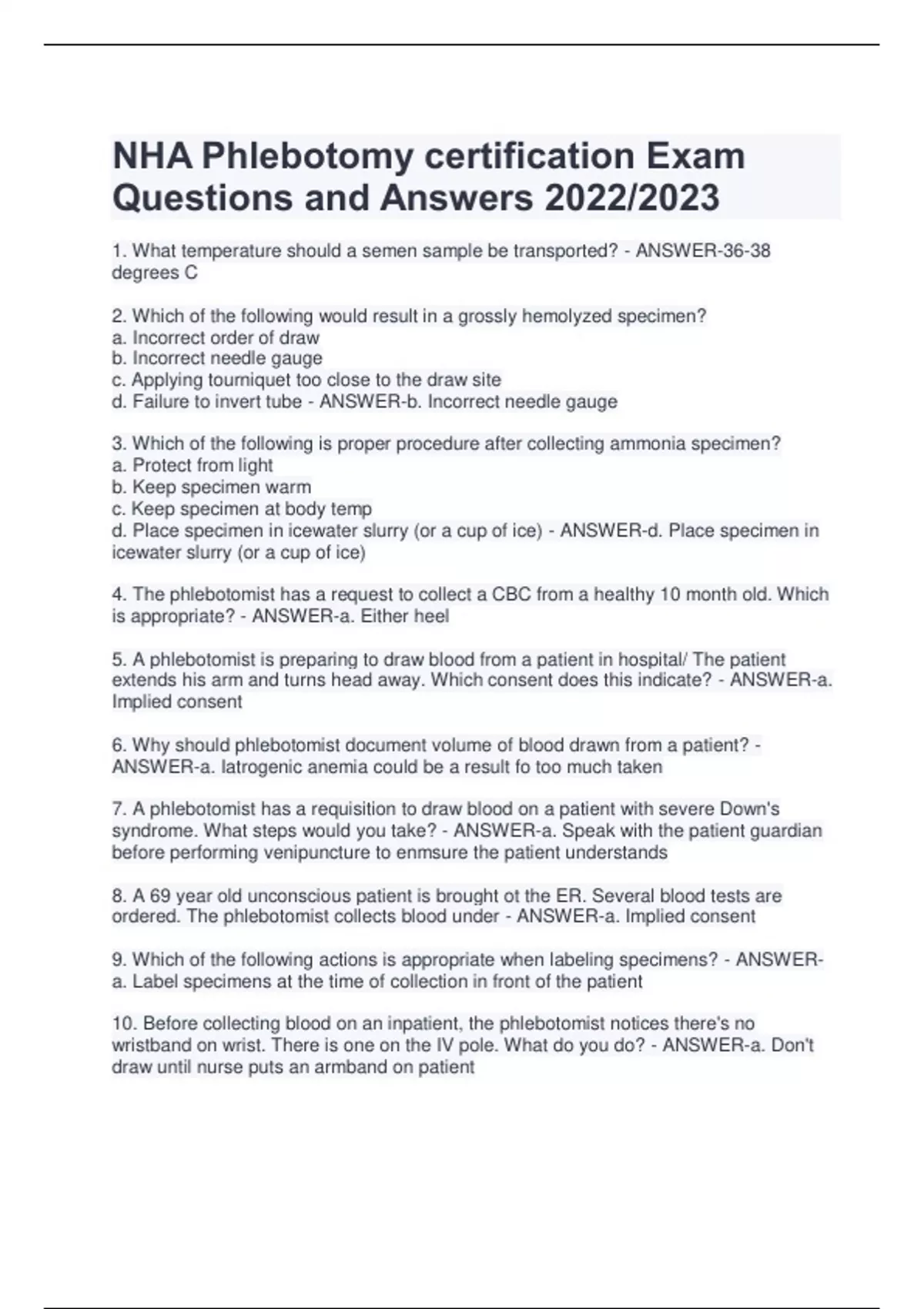 NHA Phlebotomy certification Exam Questions and Answers 2024