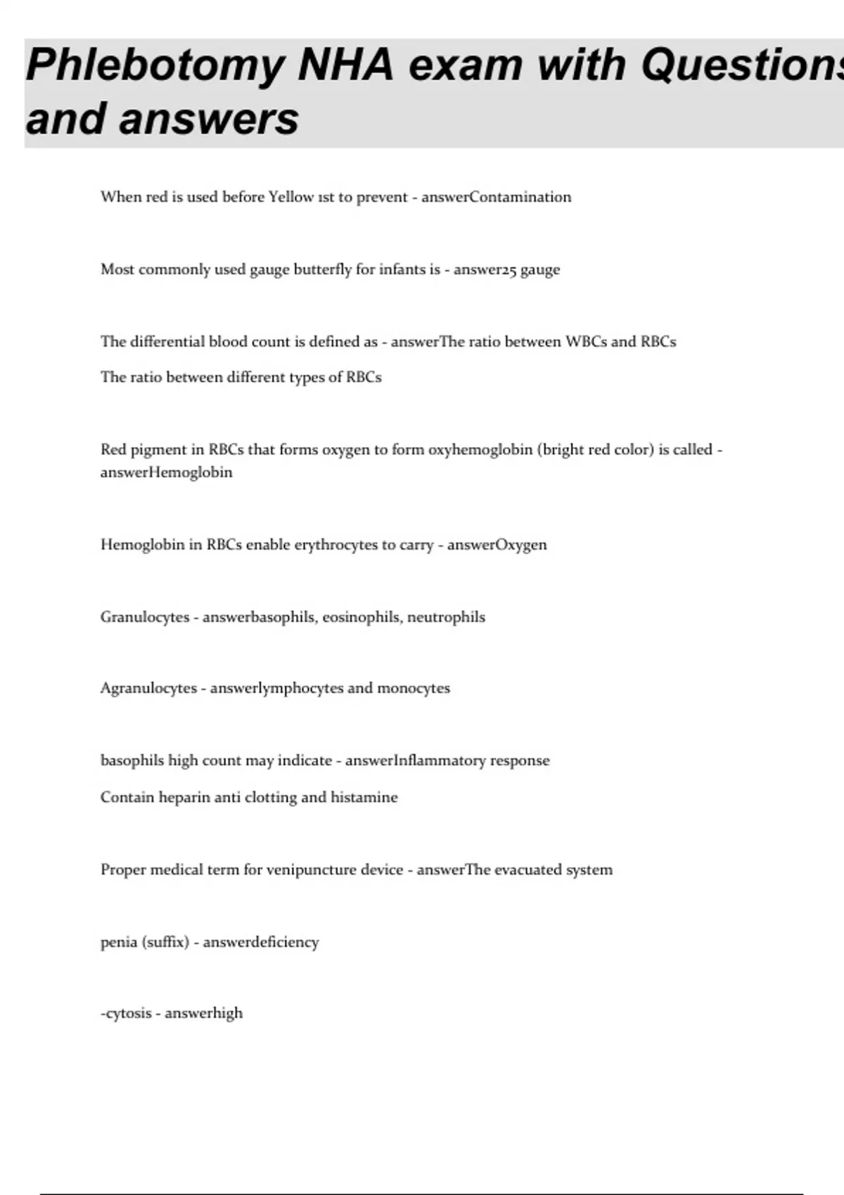 Phlebotomy NHA Exam with Questions and Answers