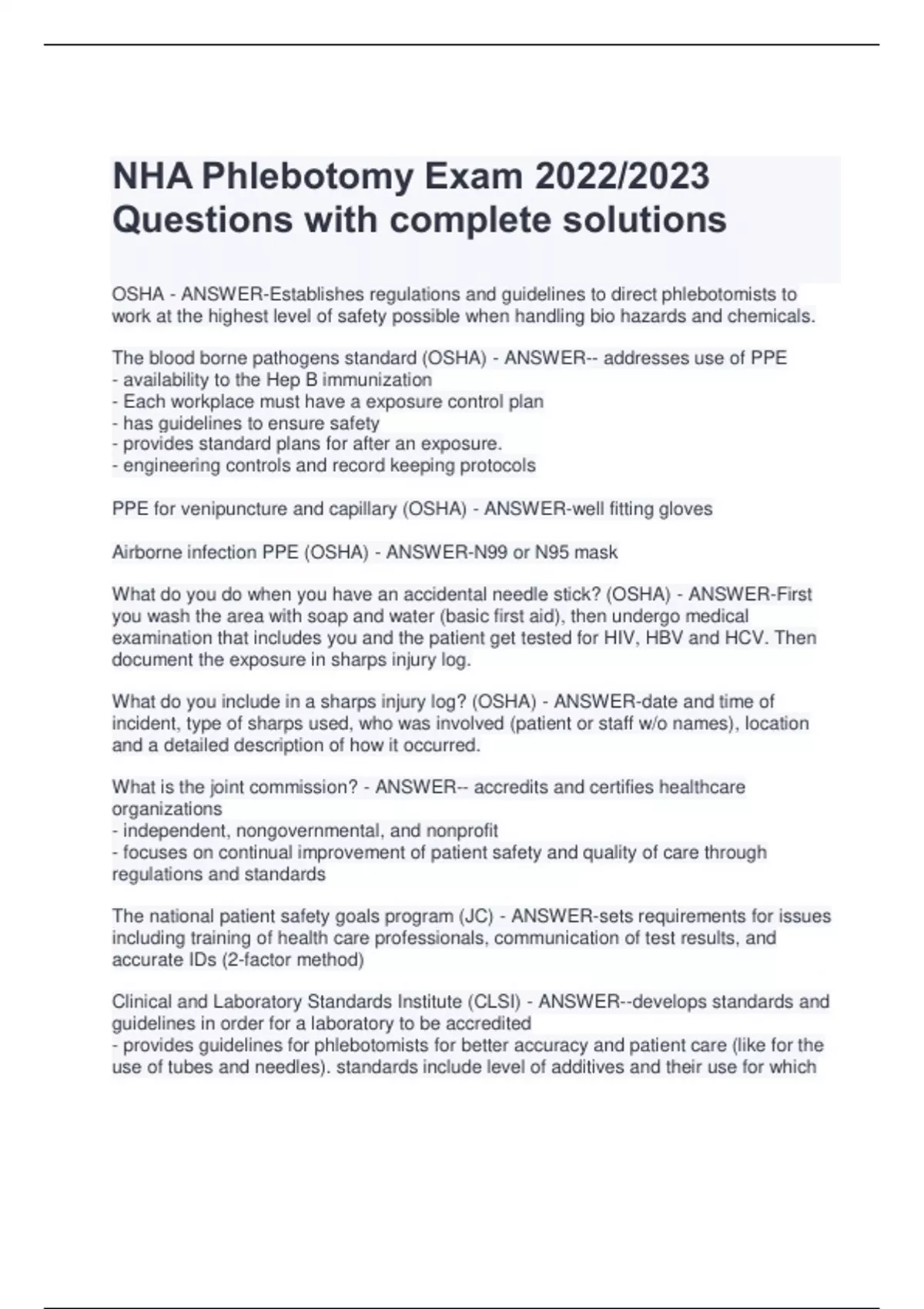 NHA Phlebotomy Exam 2022/2023 Questions with complete solutions