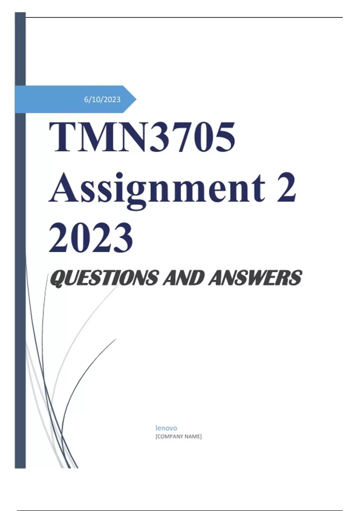 ANSWERS FOR...... QUESTION 1 1.1 Try and remember your experience as a learner in primary school and in secondary school. Write down pleasant and unpleasant experiences of being in … 1.1.1 a science class. (5) 1.1.2 a technology class. (5) 1.2 Do you think this has changed since you studied Science and Technology at school? Explain. (5) 1.3 What does this suggest about you as a future Natural Sciences and Technology teacher? (5) [20] QUESTION 2 2.1 Read up on the learning theories contained in TL501. Choose any two of these theories and compare them, focusing on similarities and differences. (5) 2.2 Find out what two other relevant theories there are and briefly describe them. Use textbooks and journals or key the words “learning theories” into an internet search engine. (5) 2.3 Choose any learning theory from question 2.1 or 2.2 and explain how it aligns with your views of teaching Natural Sciences and Technology. (5) 2.4 Considering that there is no single theory about learning applicable to all children, how will you cater for the diverse learner population in your class? (5) [20] QUESTION 3 3.1 Describe in detail the role of a teacher in a Natural Sciences and Technology classroom. (5) 3.2 Describe in detail the role of a learner in a Natural Sciences and Technology classroom. (5) 3.3 How are the roles described in question 3.1 and question 3.2 related? (5) 3.4 Give a detailed discussion on how teacher competencies, learning activities and assessment are interwoven in Natural Sciences and Technology teaching. (5) [20] Downloaded by Corona Virus () lOMoARcPSD| TMN3705/101 15 QUESTION 4 4.1 Briefly describe the term “assessment”. (2) 4.2 Name and describe at least five different methods of assessment. (12) 4.3 Study the curriculum very carefully and write down the type of formal assessments that you would formulate for learners in Natural Sciences and Technology in Grade 4 in each term. Indicate the types of assessments that are prescribed in the curriculum and specify those that you would design for your learners. (20) 4.4 List any six teacher professional knowledge bases used to formulate pedagogical content knowledge (PCK). (6) [40]