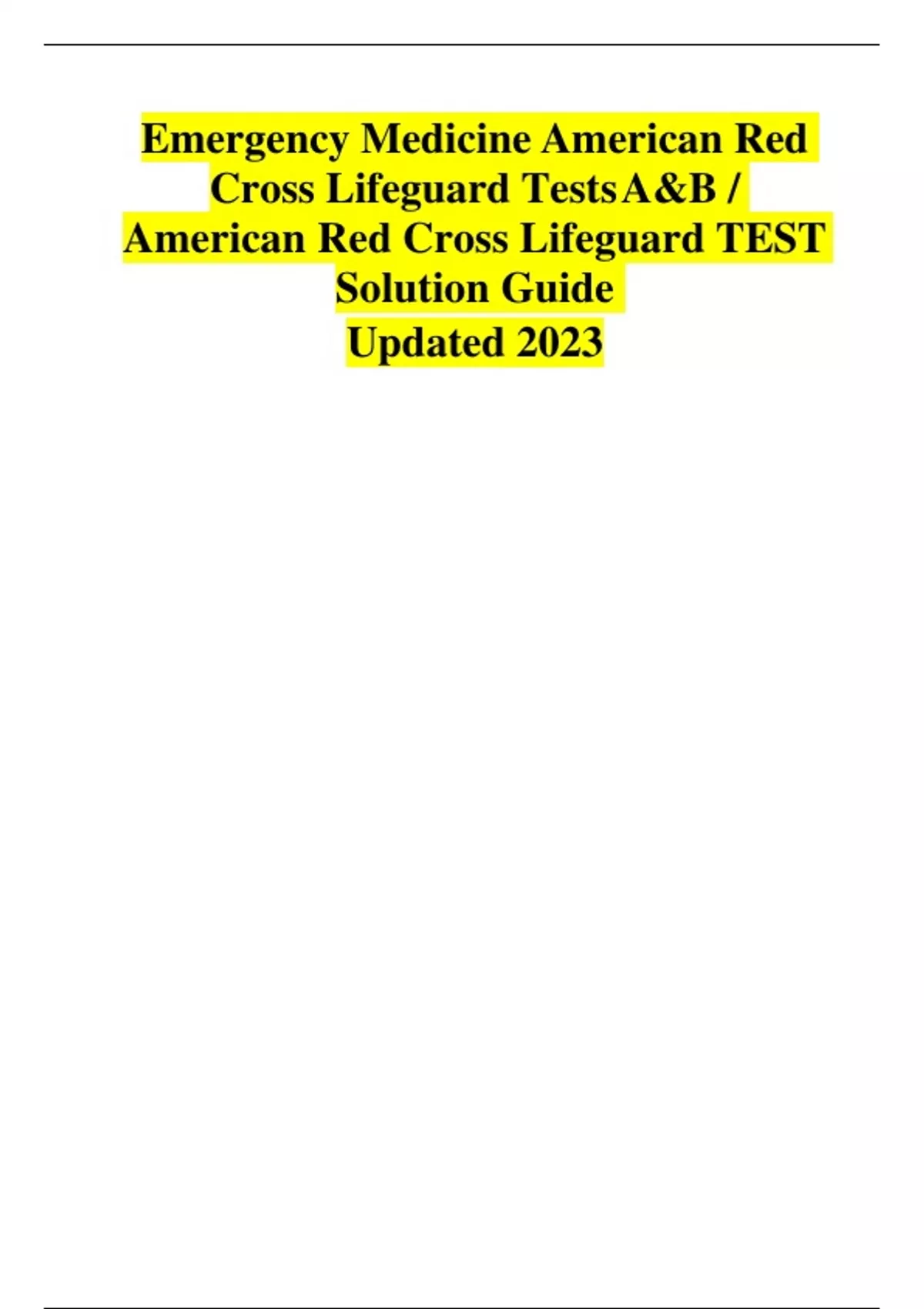 Emergency Medicine American Red Cross Lifeguard Tests A&B / American Red Cross Lifeguard TEST Solution Guide updated 2023