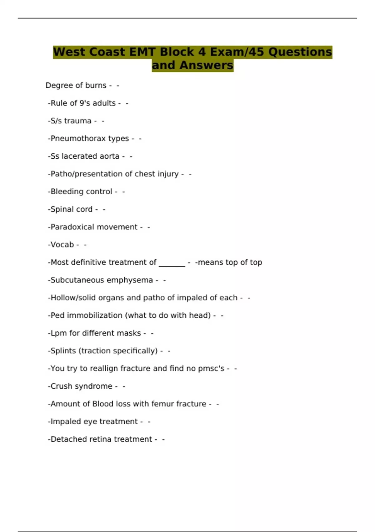 West Coast EMT Block 4 Exam/45 Questions and Answers