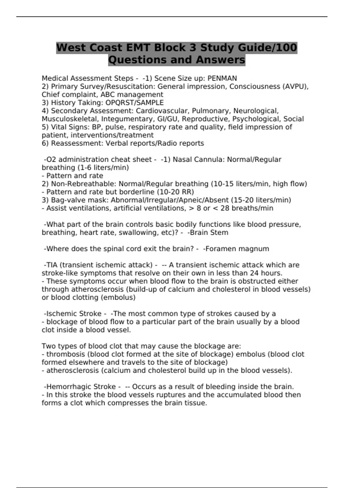 West Coast EMT Block 3 Study Guide/100 Questions and Answers