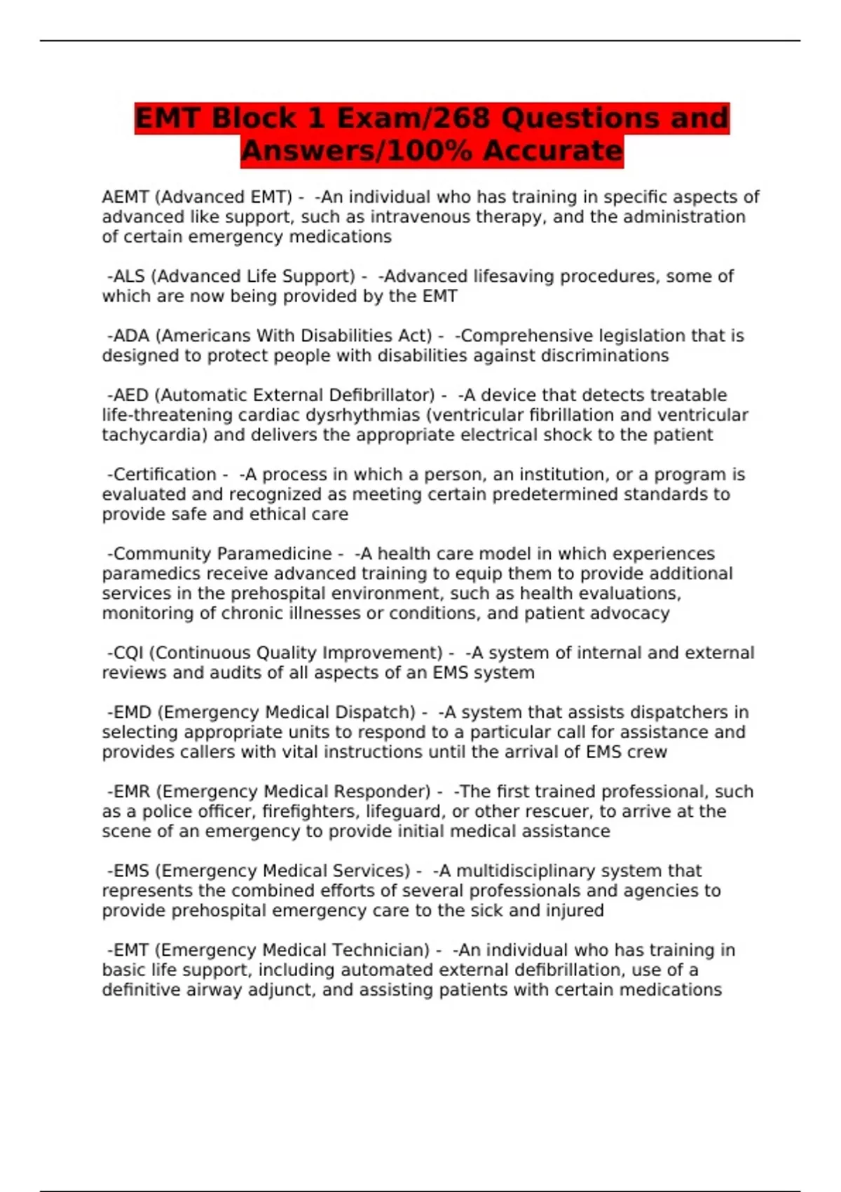 EMT Block 1 Exam/268 Questions and Answers/100% Accurate