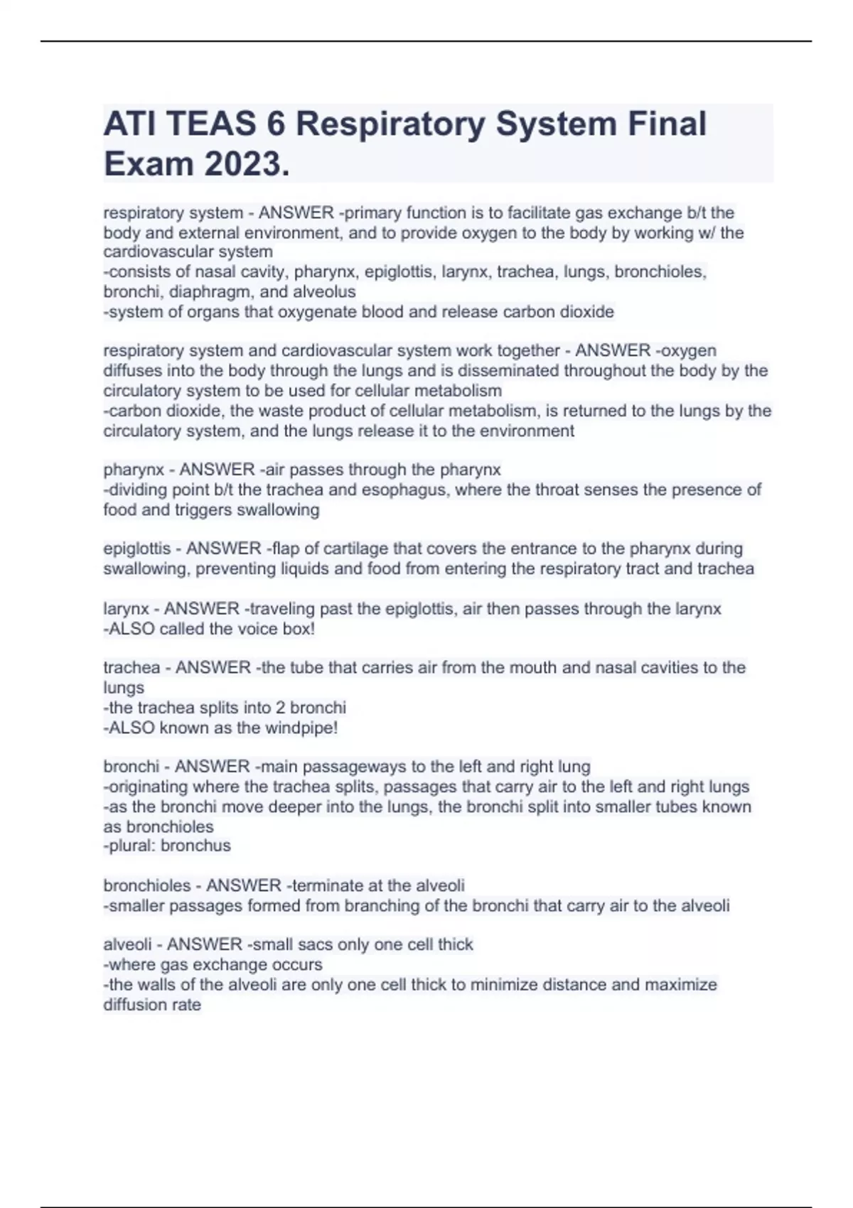 ATI TEAS 6 Respiratory System Final Exam 2023.