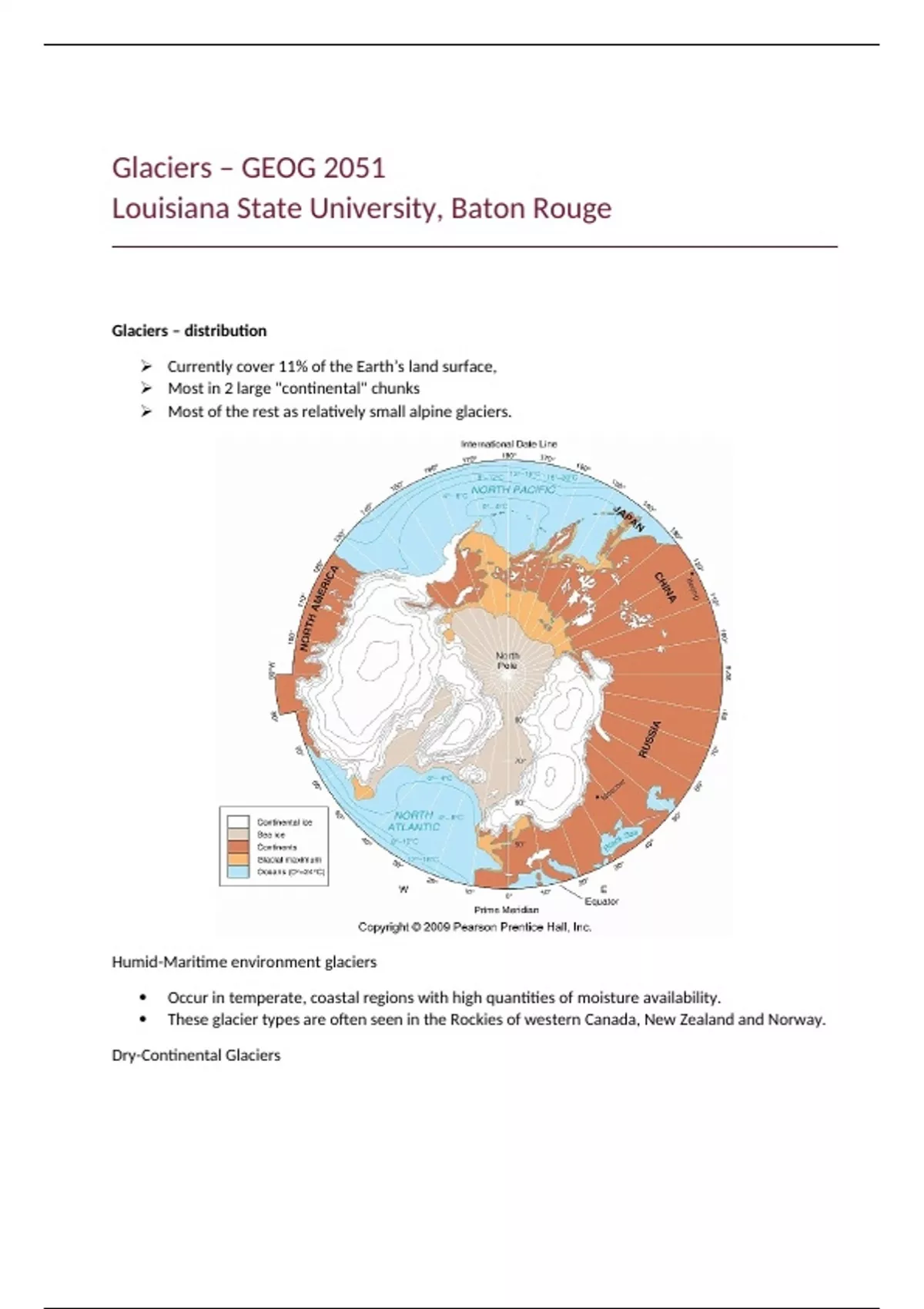 Course: GEOG 2051 Location: Louisiana State University, Baton Rouge Instructor: Namikas What's Included: In-depth class notes on glaciers
