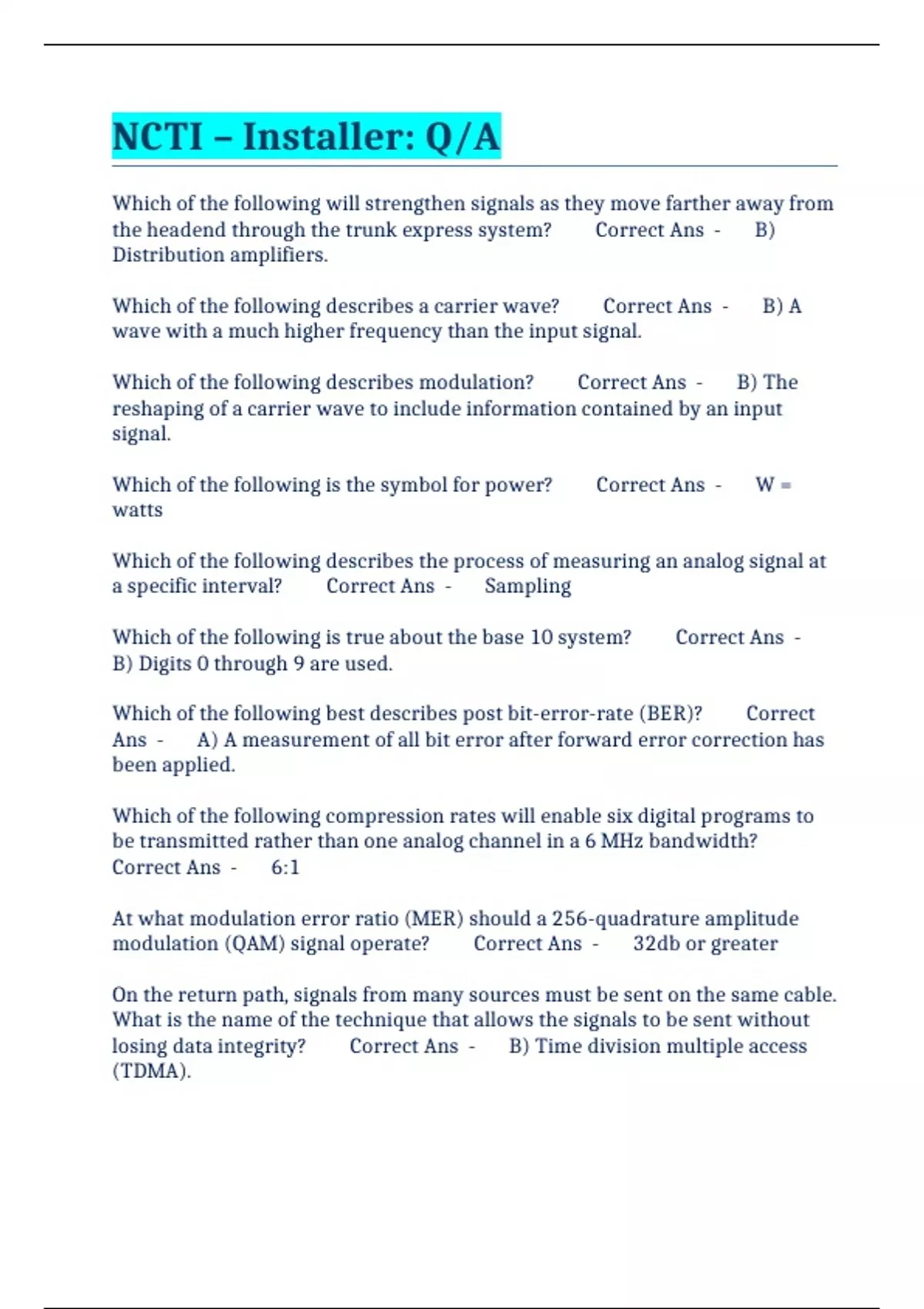 NCTI – Installer: Q/A