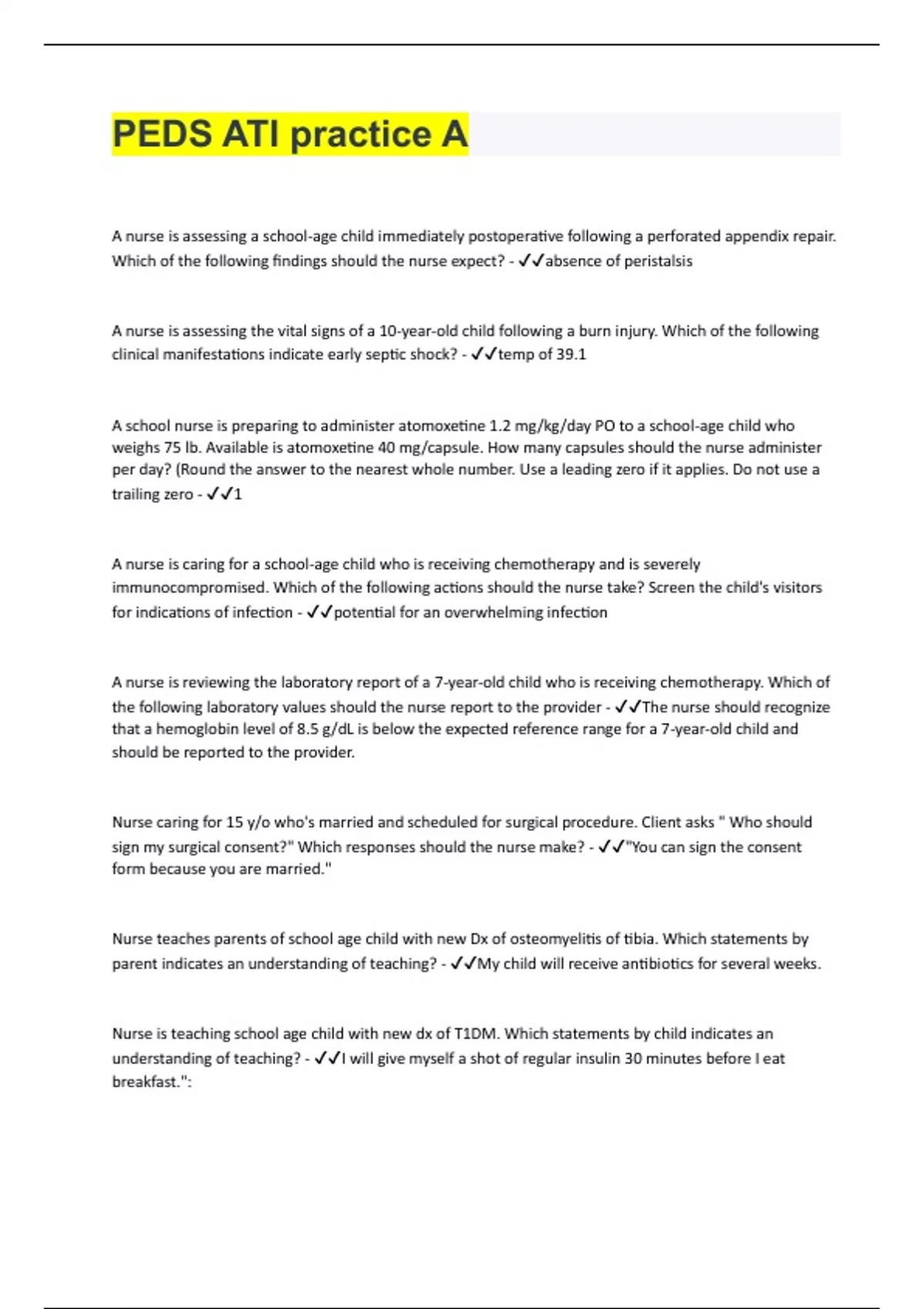 PEDS ATI practice | Questions with 100% Correct Answers | Verified