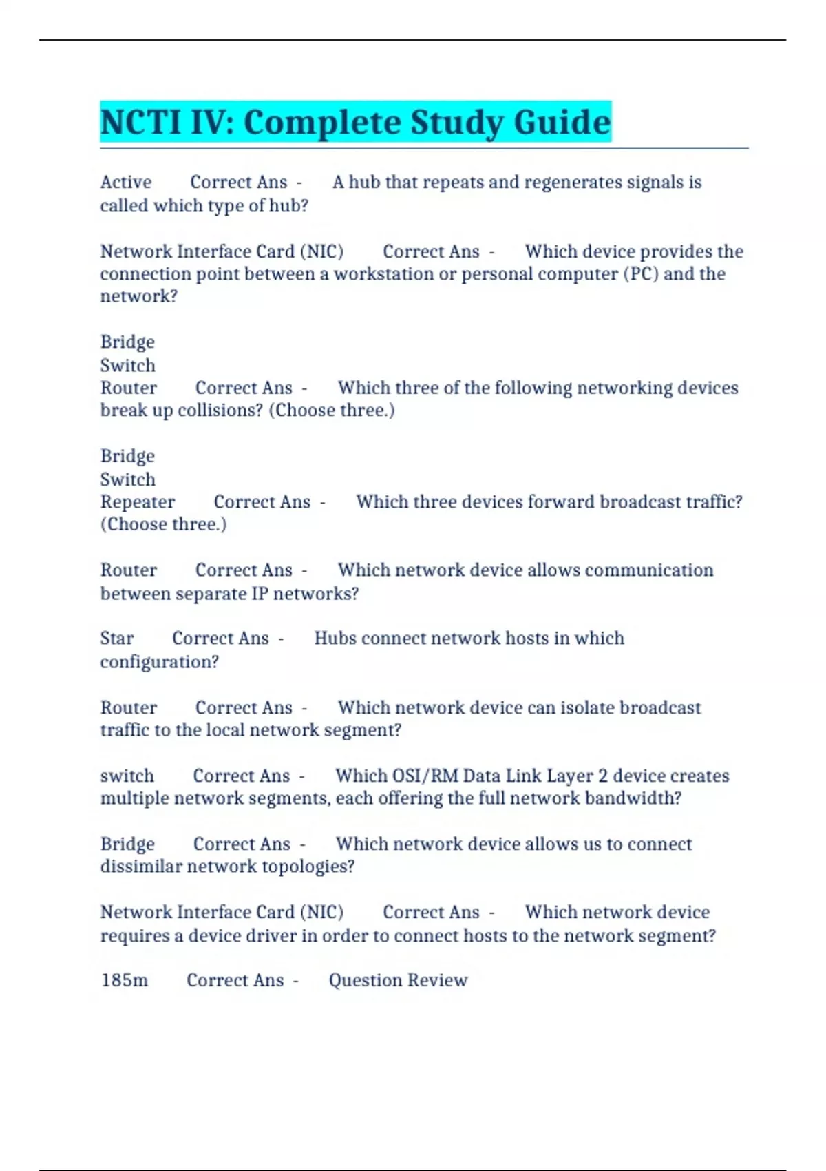Network Interface Card (NIC) Correct Ans - Which device provides the