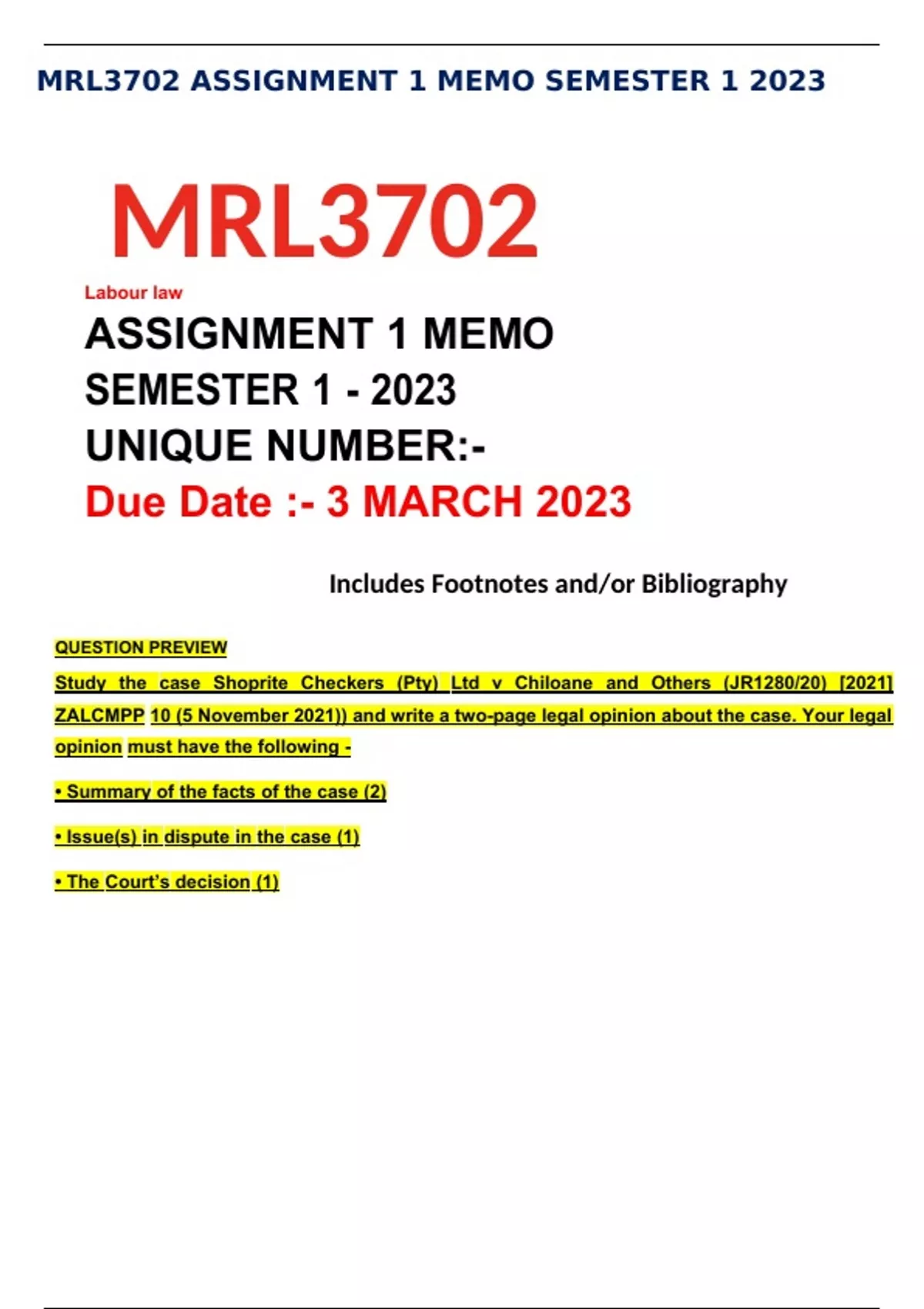 mrl3702 assignment 1 memo semester 1 2023
