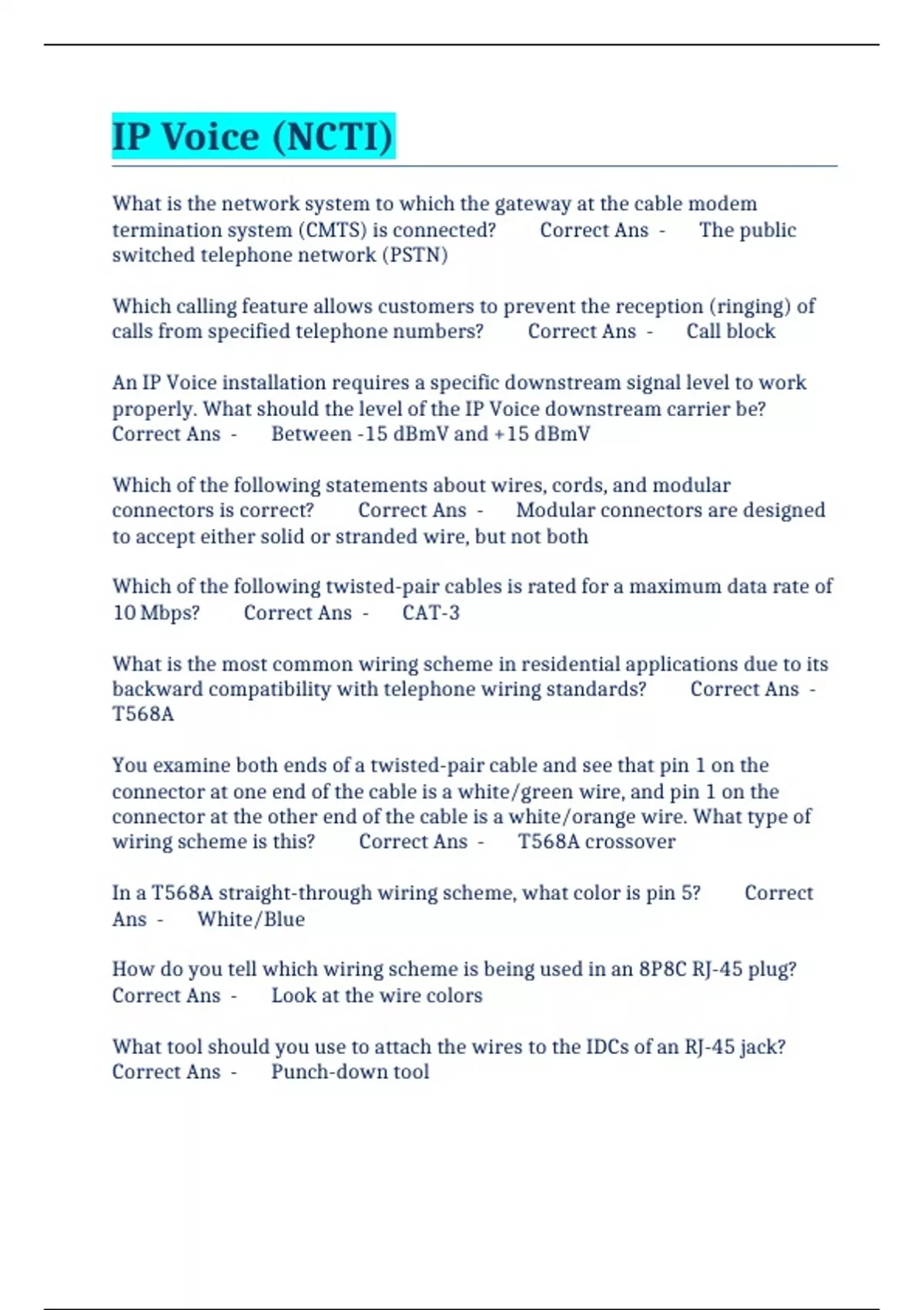 backward compatibility with telephone wiring standards? Correct Ans -