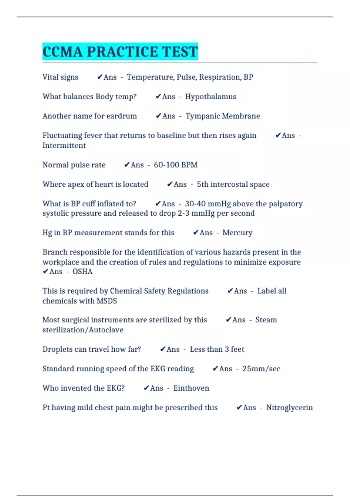 Exam of 25 pages for the course CCMA PRACTICE TEST* at CCMA PRACTICE TEST* (CCMA PRACTICE TEST*)