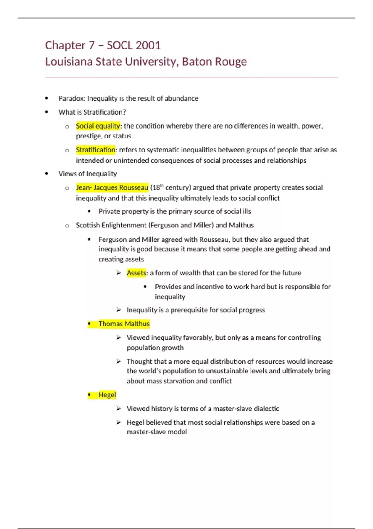 Course: SOCL 2001 Location: Louisiana State University, Baton Rouge Instructor: Chauvin What's Included: In-depth class notes covering chapter 7