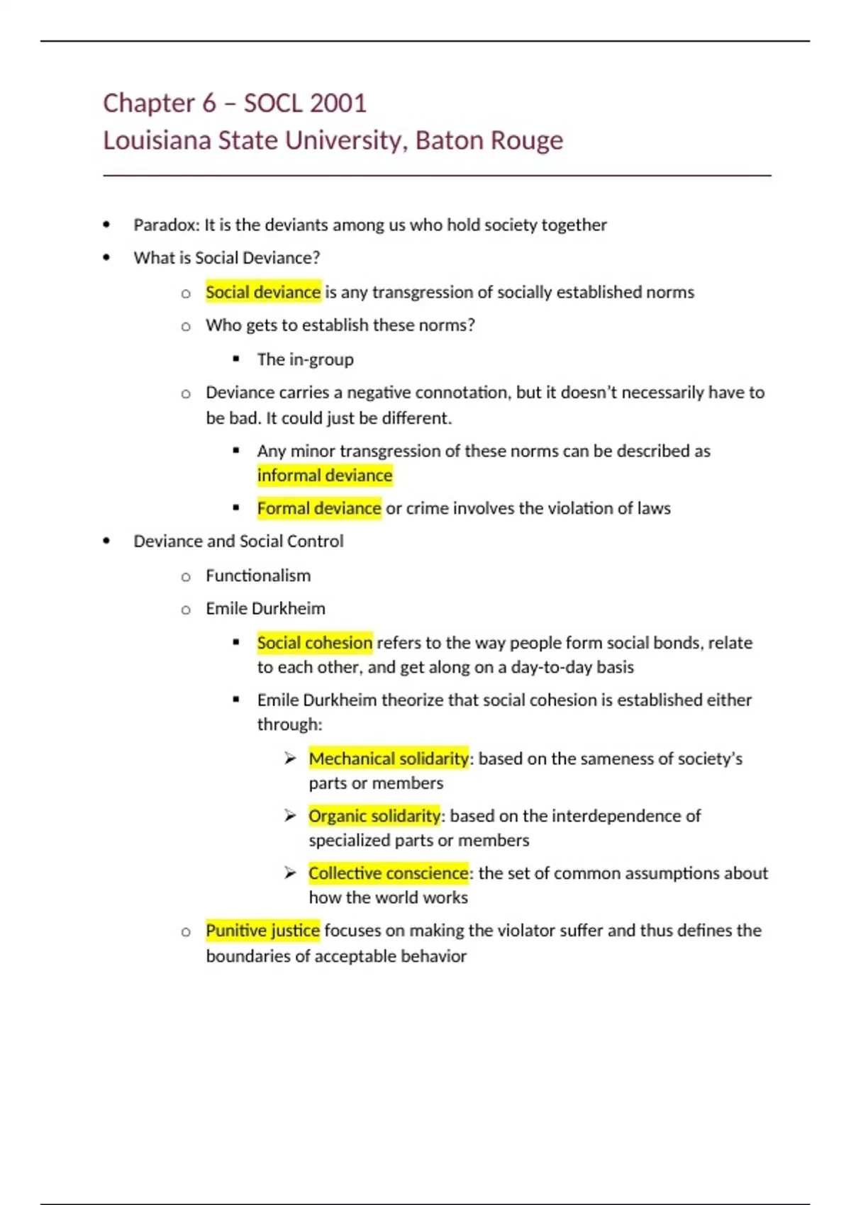Course: SOCL 2001 Location: Louisiana State University, Baton Rouge Instructor: Chauvin What's Included: In-depth class notes covering chapter 6