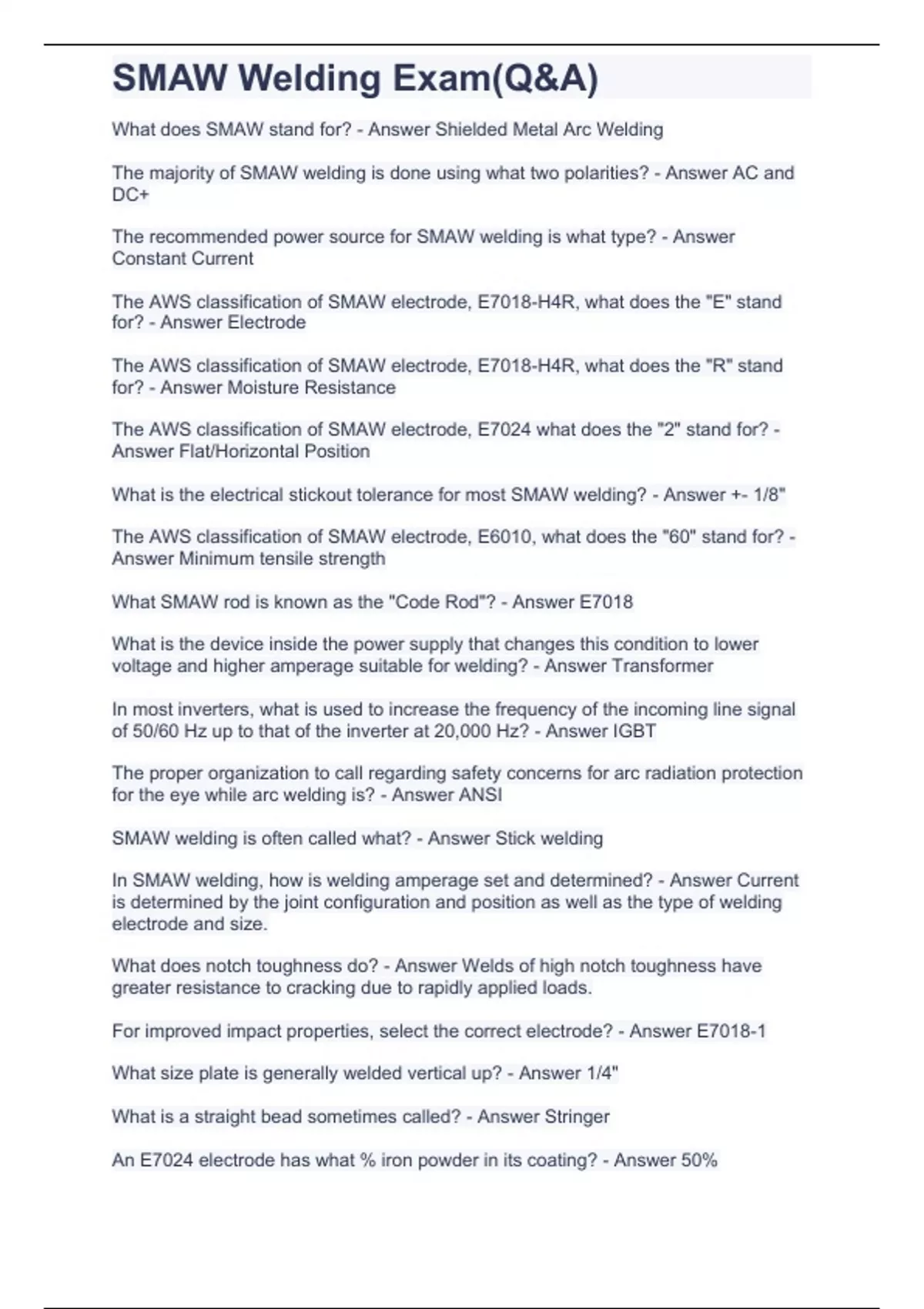 SMAW Welding Exam(Q&A)