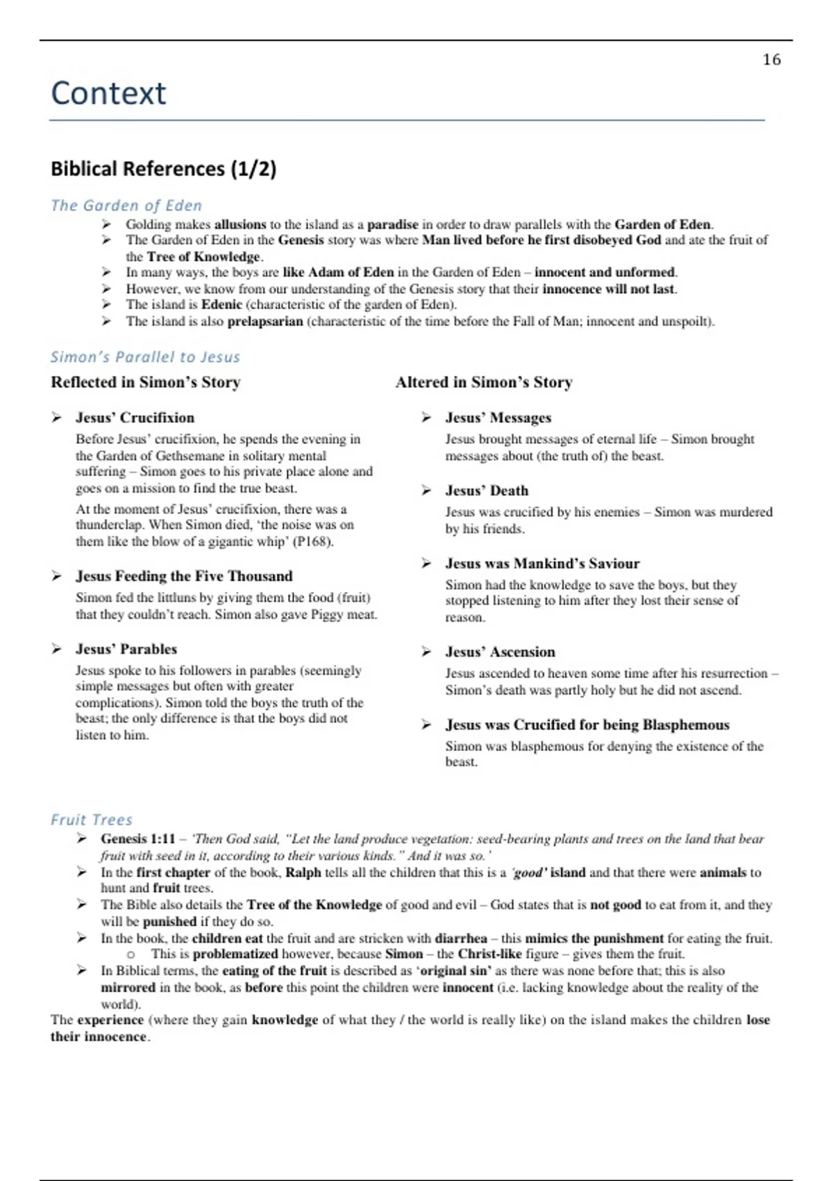 o This is problematized however, because Simon – the Christ-like figure – gives them the fruit.