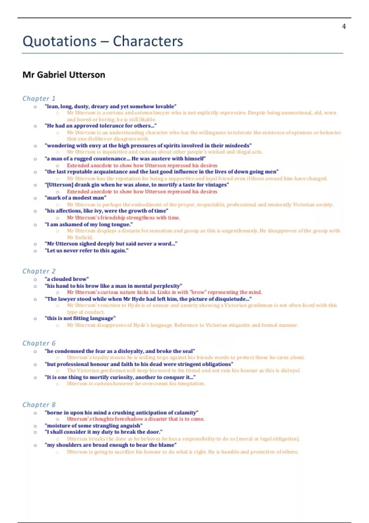 o Mr Utterson is a serious and solemn lawyer who is not explicitly expressive. Despite being unemotional, old, worn