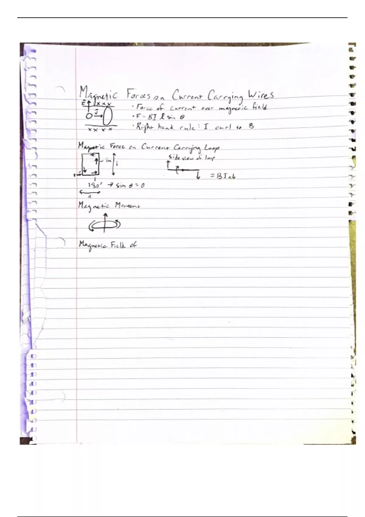 These notes explain the Magnetic Forces On Current Carrying Wires