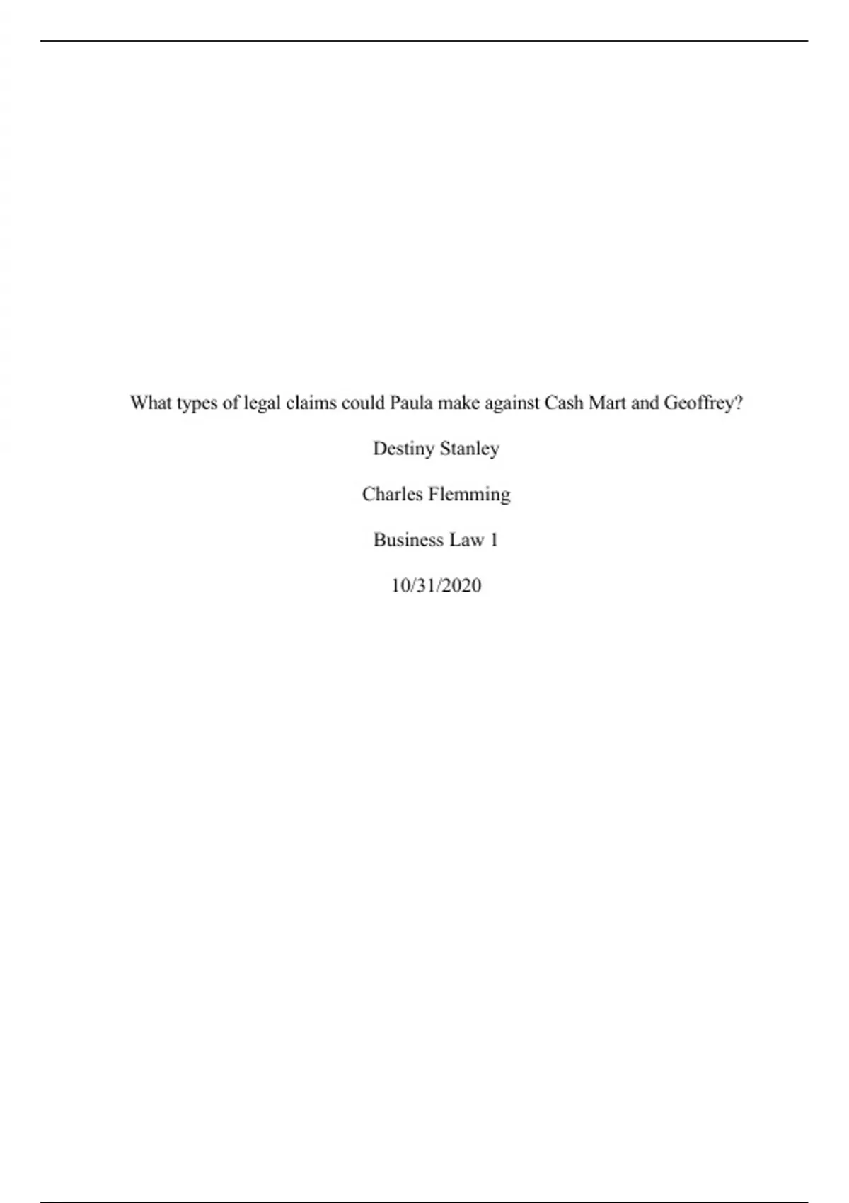 What types of legal claims could Paula make against Cash Mart and Geoffrey?