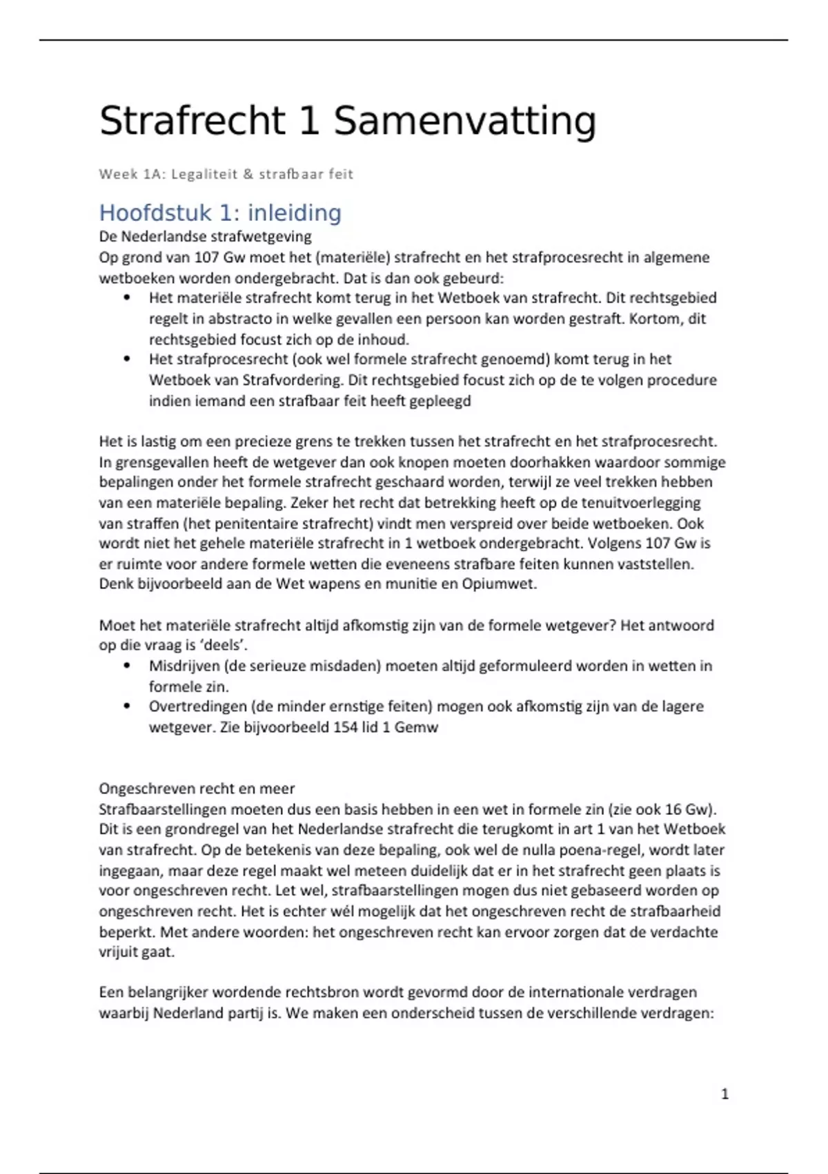 Strafrecht 1 Samenvatting