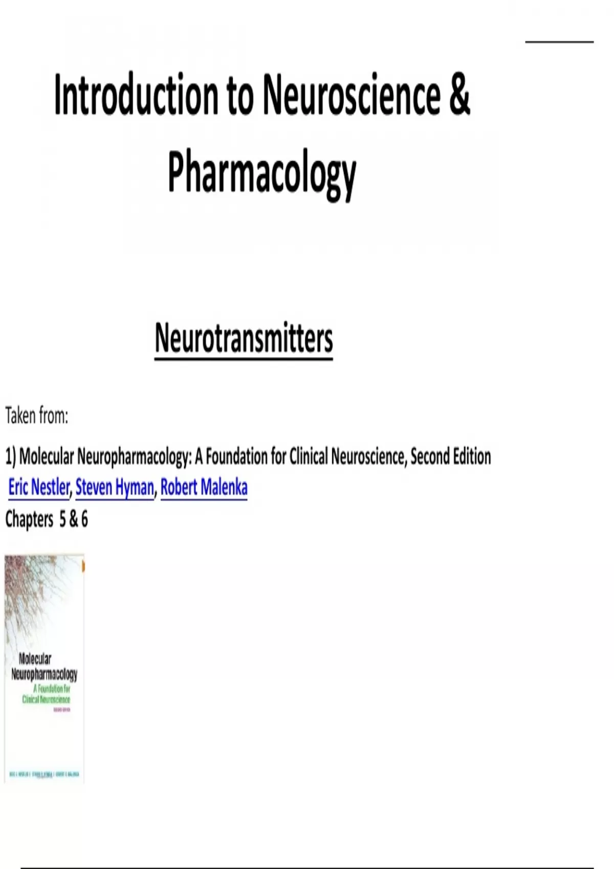 1) Molecular Neuropharmacology: A Foundation for Clinical Neuroscience, Second Edition